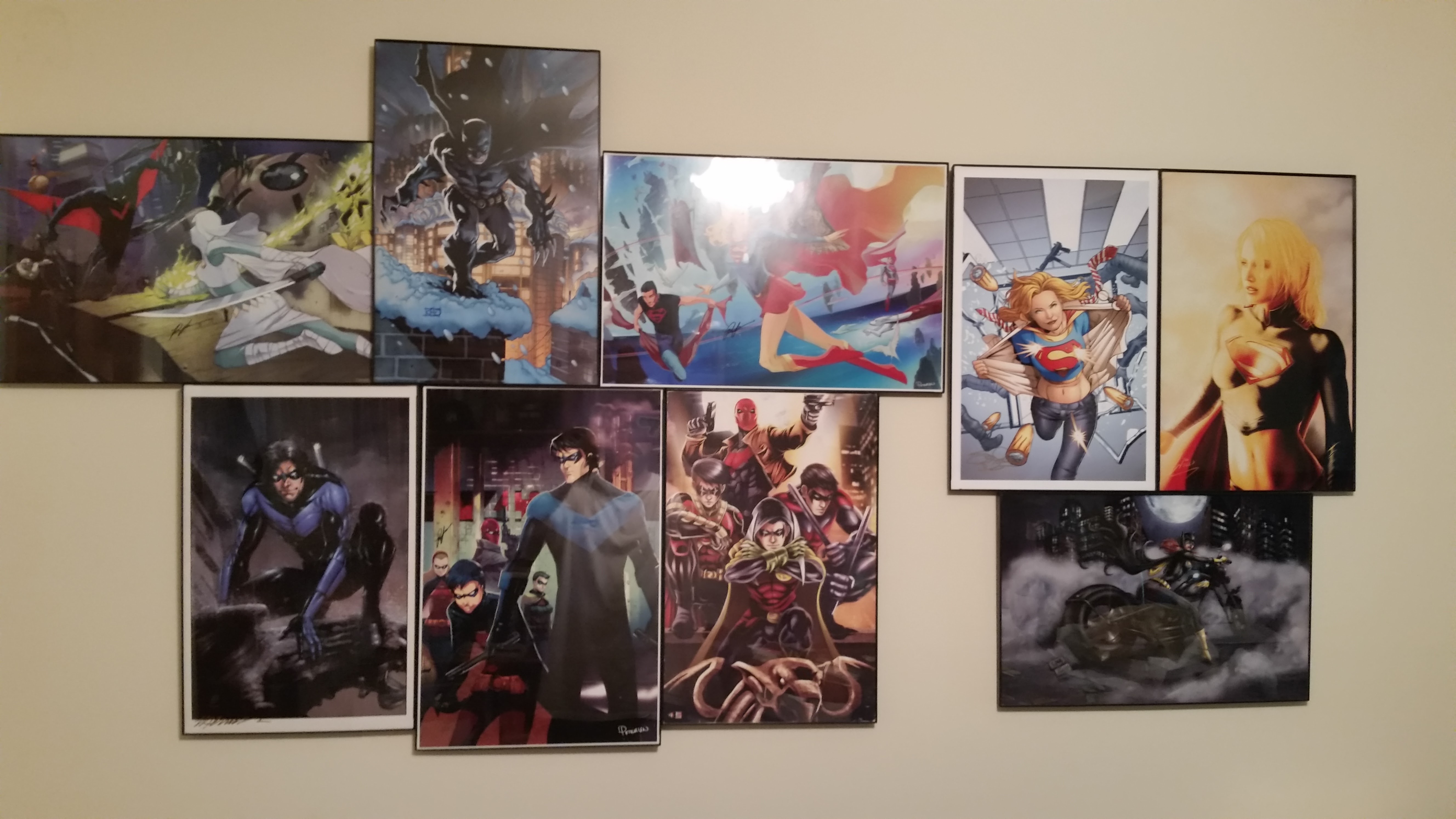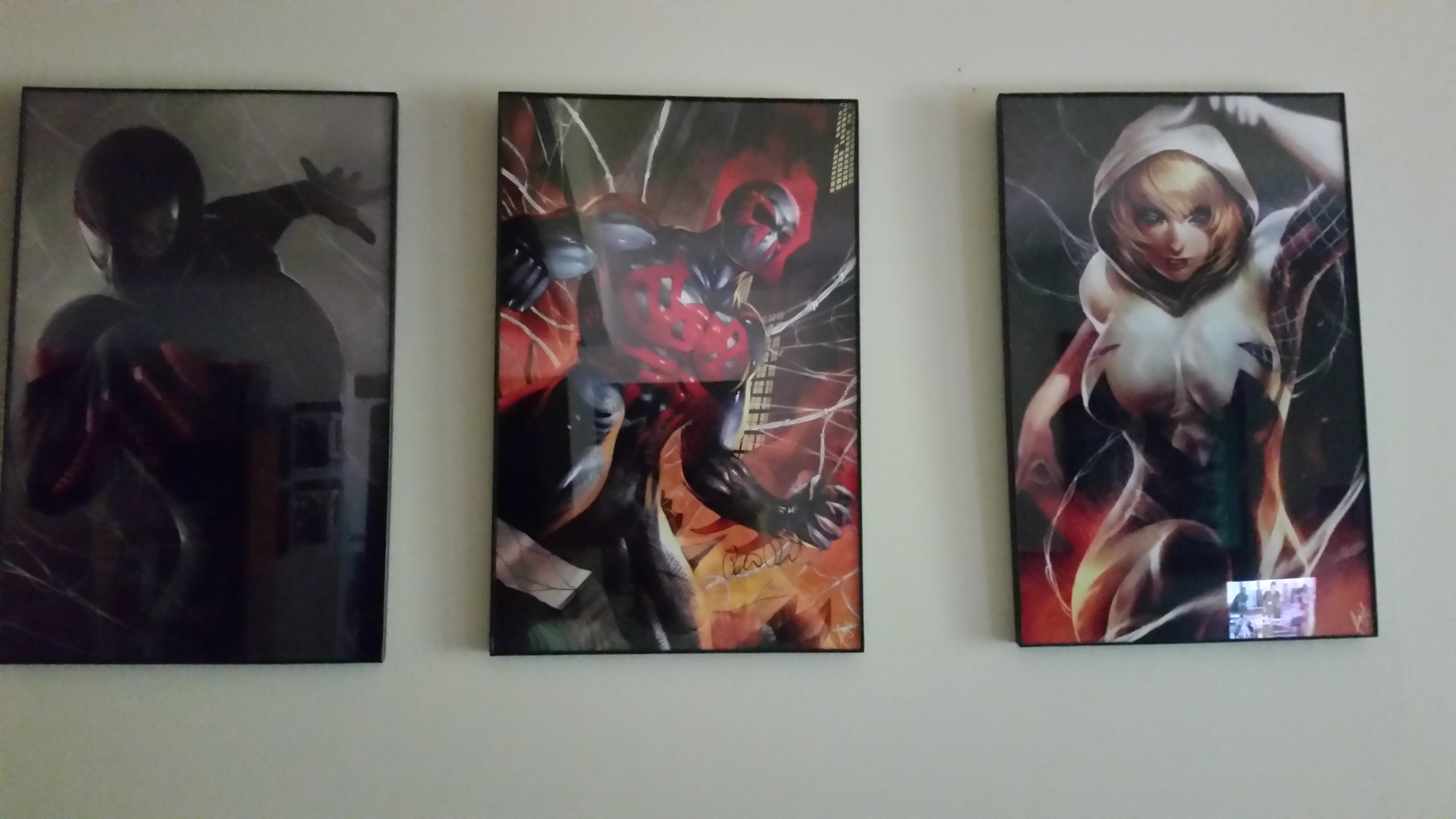 [Sidebar: I bought all of the art at a 'Con 4 or 5 years ago, and shortly after I bought Spider-Man 2099, I met Peter David (https://www.peterdavid.net/biography/) who was one of the big-time writers for Miguel O'Hara, and even though I promised myself that I would not geek out, I totally geeked out and was all fanboy. He's my favorite author of some my favorite books. He signed the picture for me. It is a prized possession because that was a cool moment.]