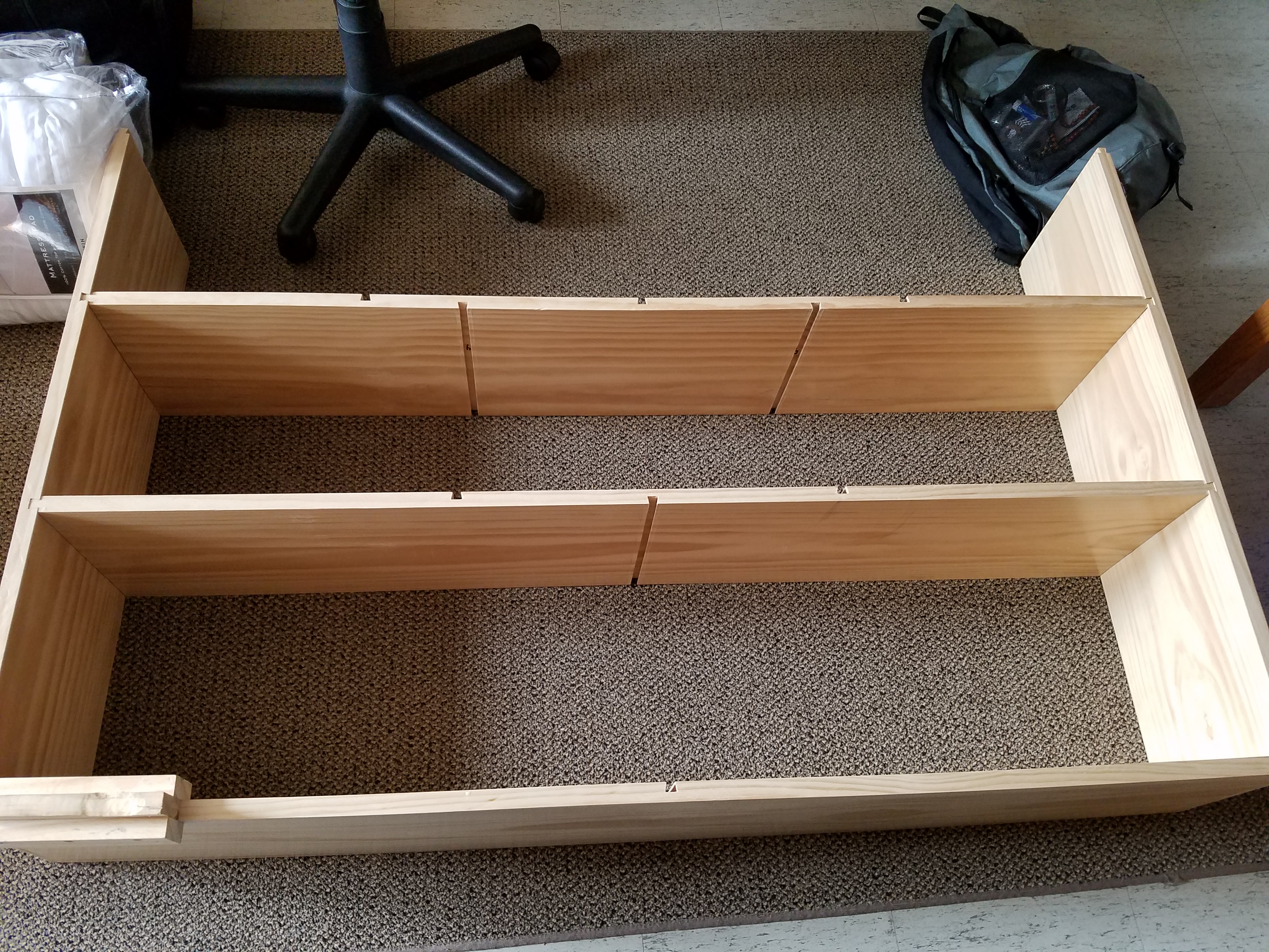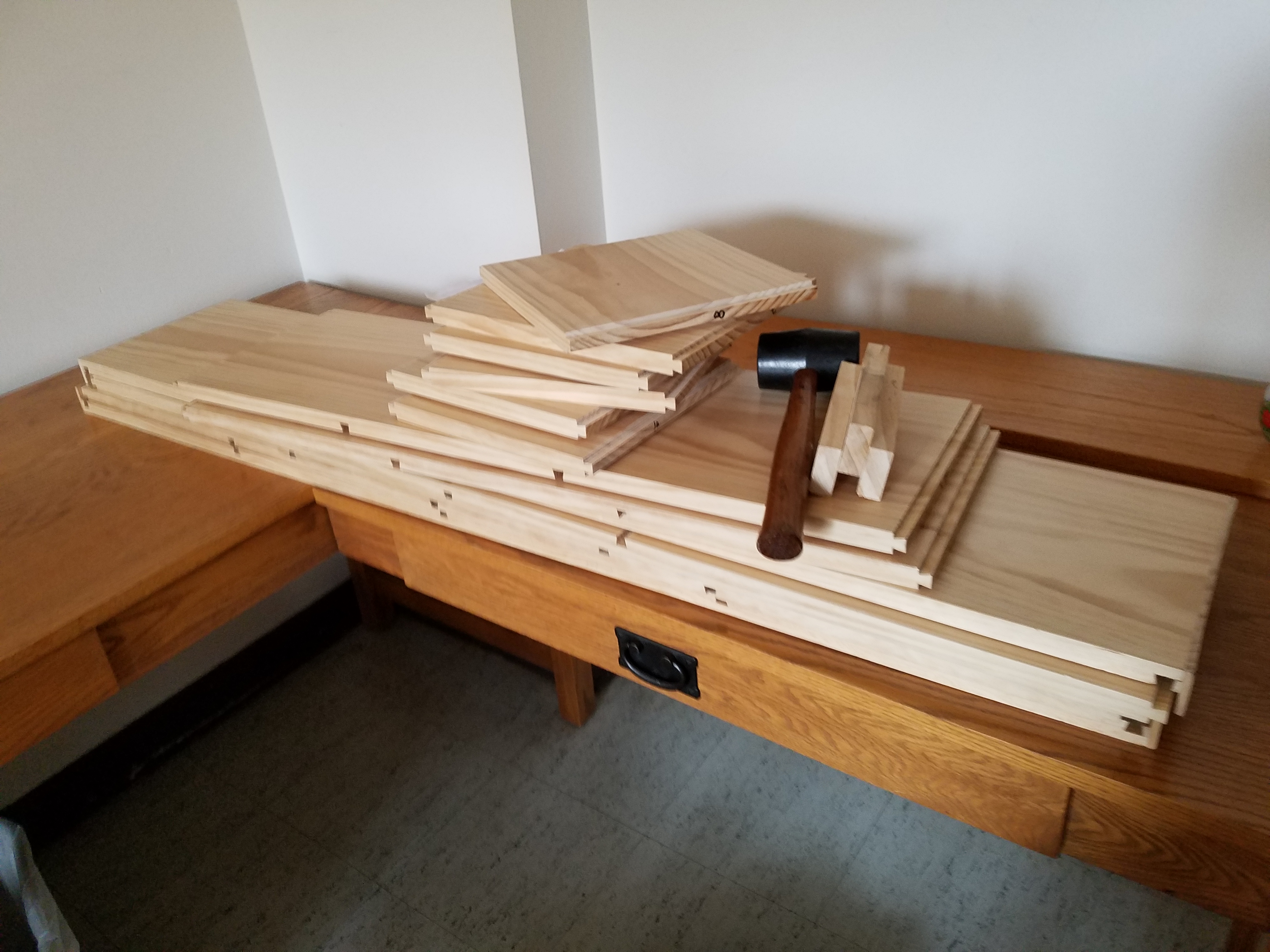 We had discussed some ideas, and I suggested using dovetails. I sent him some videos from YouTube, and he just took off and ran with it. Once it was ready, I brought it to the seminary, and here's the progression: