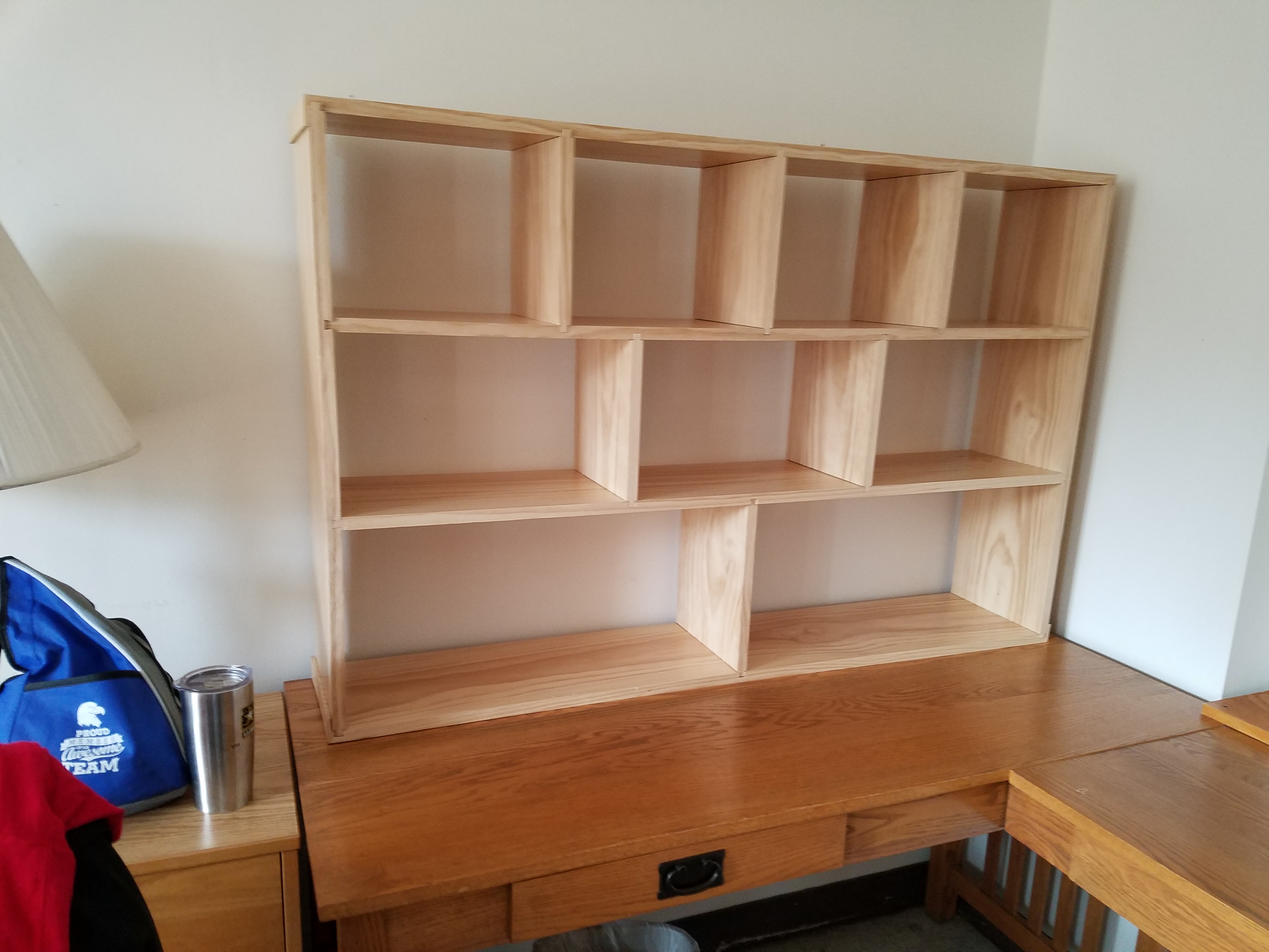 There was a bonus to my move back to seminary, as I had made a request of my father to have a new bookshelf. I wanted something that would sit on my desk without taking up too much space, and I wanted to be able to quickly disassemble it so as to get on my merry when it was time to move out again - my, I wonder what put that idea in my head? Hmmm...