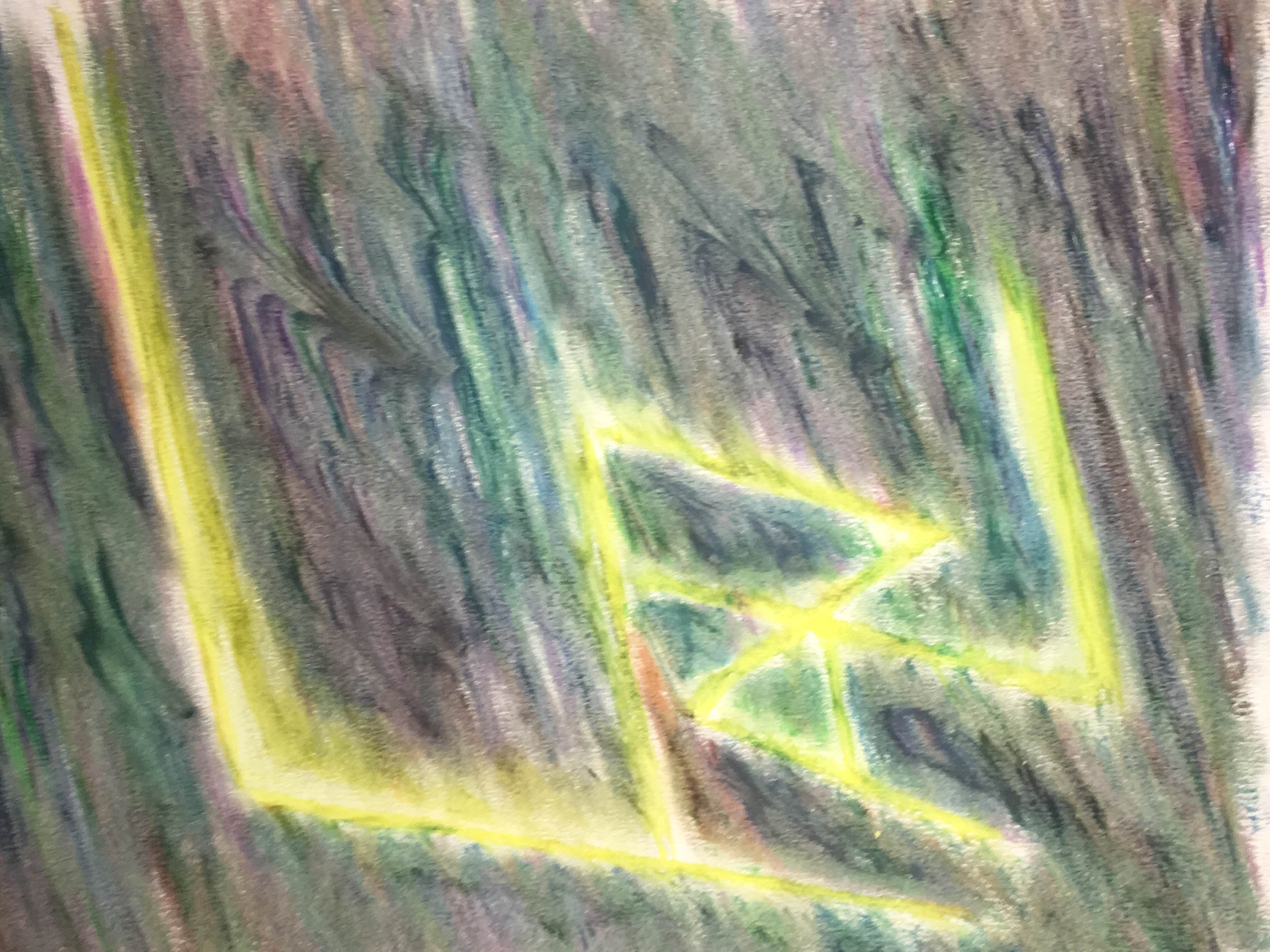 I created these paintings while thinking about life. The first one is called "I Am." We are always evolving. Who we are right now is good enough. In the middle of chaos, we have the power to be calm. Who are you? How do you finish the statement? I am . . .