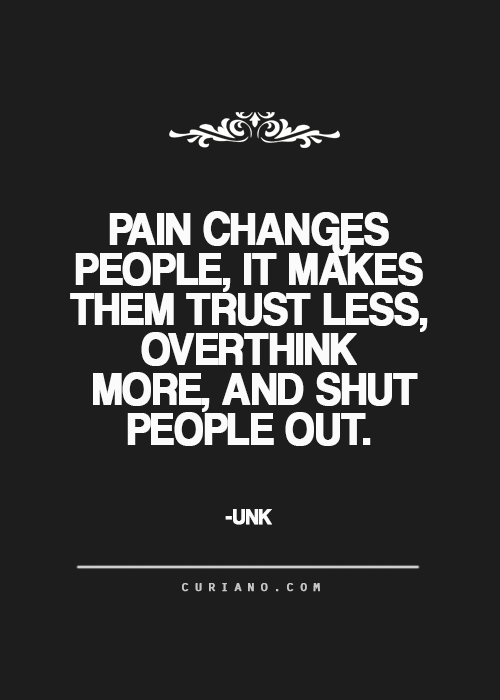yes pain does change people but hopefully makes them better because it makes them wiser and more cautious. instead of bitter. hopefully.