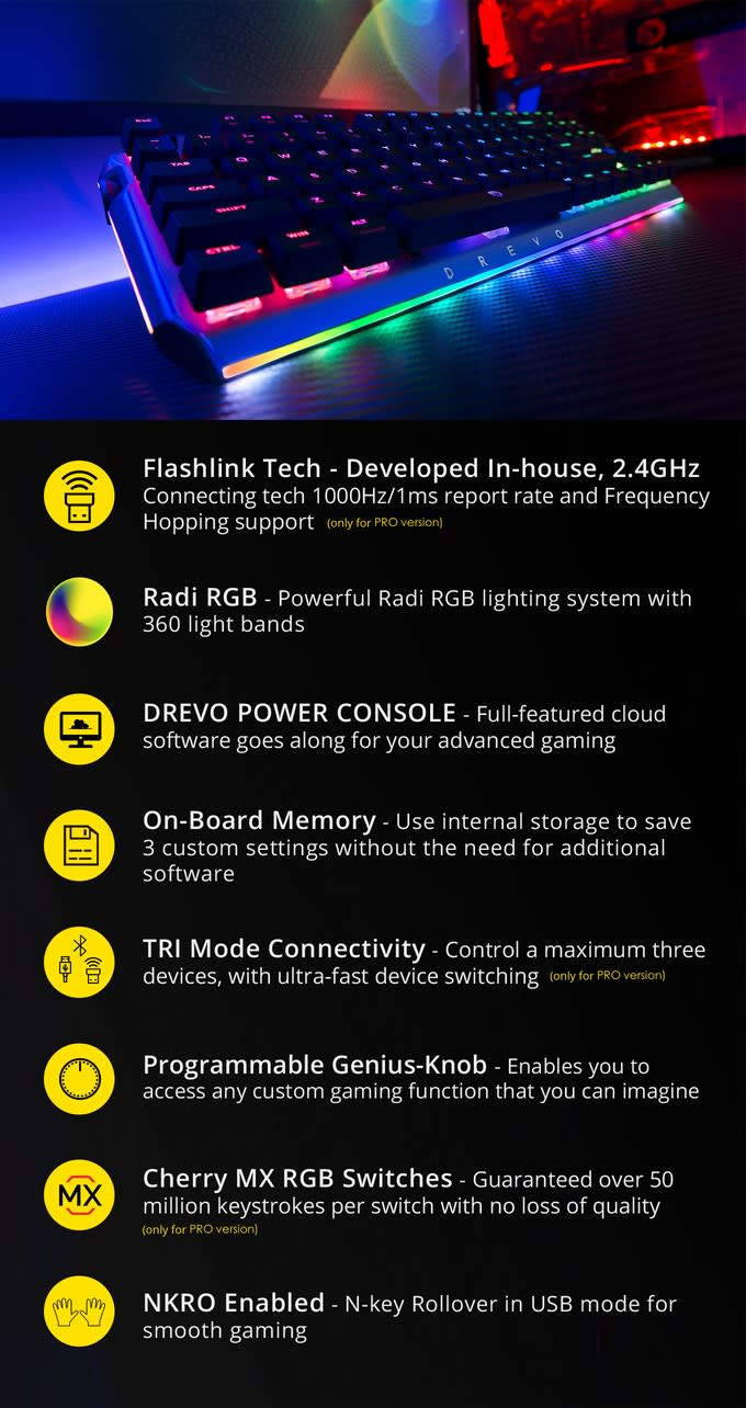 DREVO BladeMaster - the most innovative keyboard features full programmability and Genius-Knob, made for a high productivity for any usage scenario you can image on a PC or Mac.