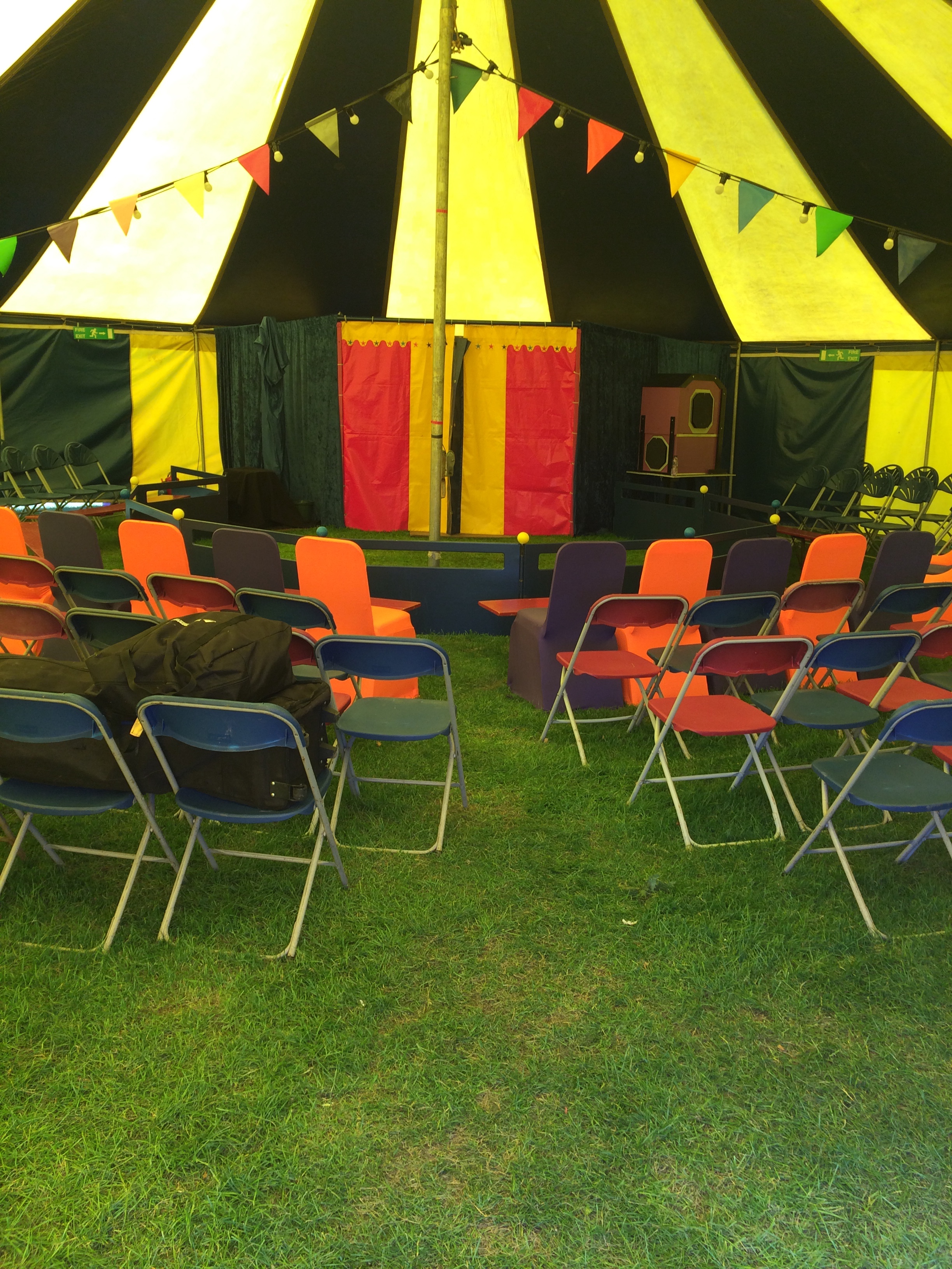 There’s a school assembly in the tent for a wee taster & as a thank you, as we are pitched up on their playing field.