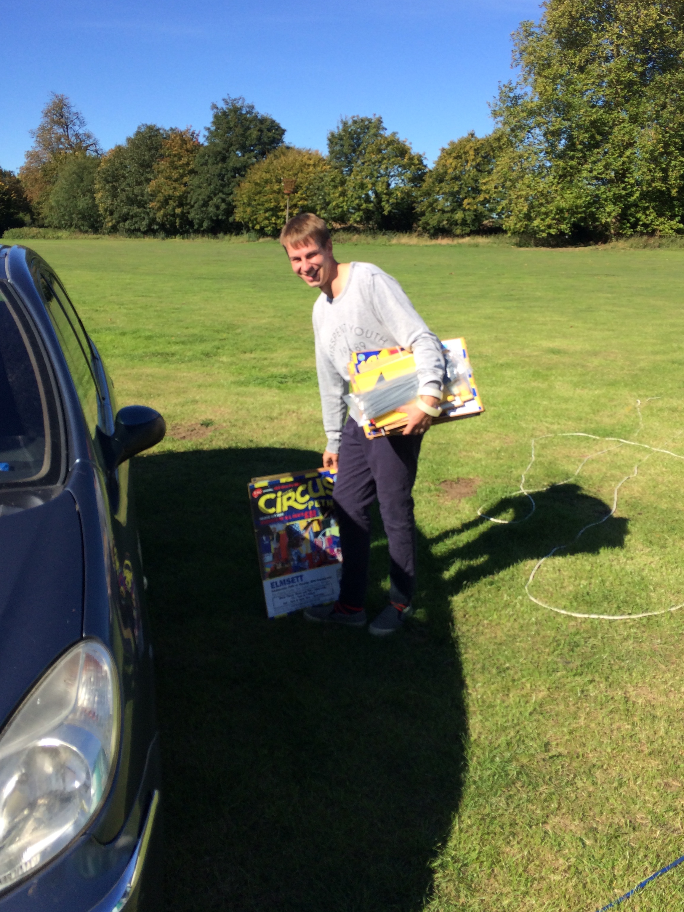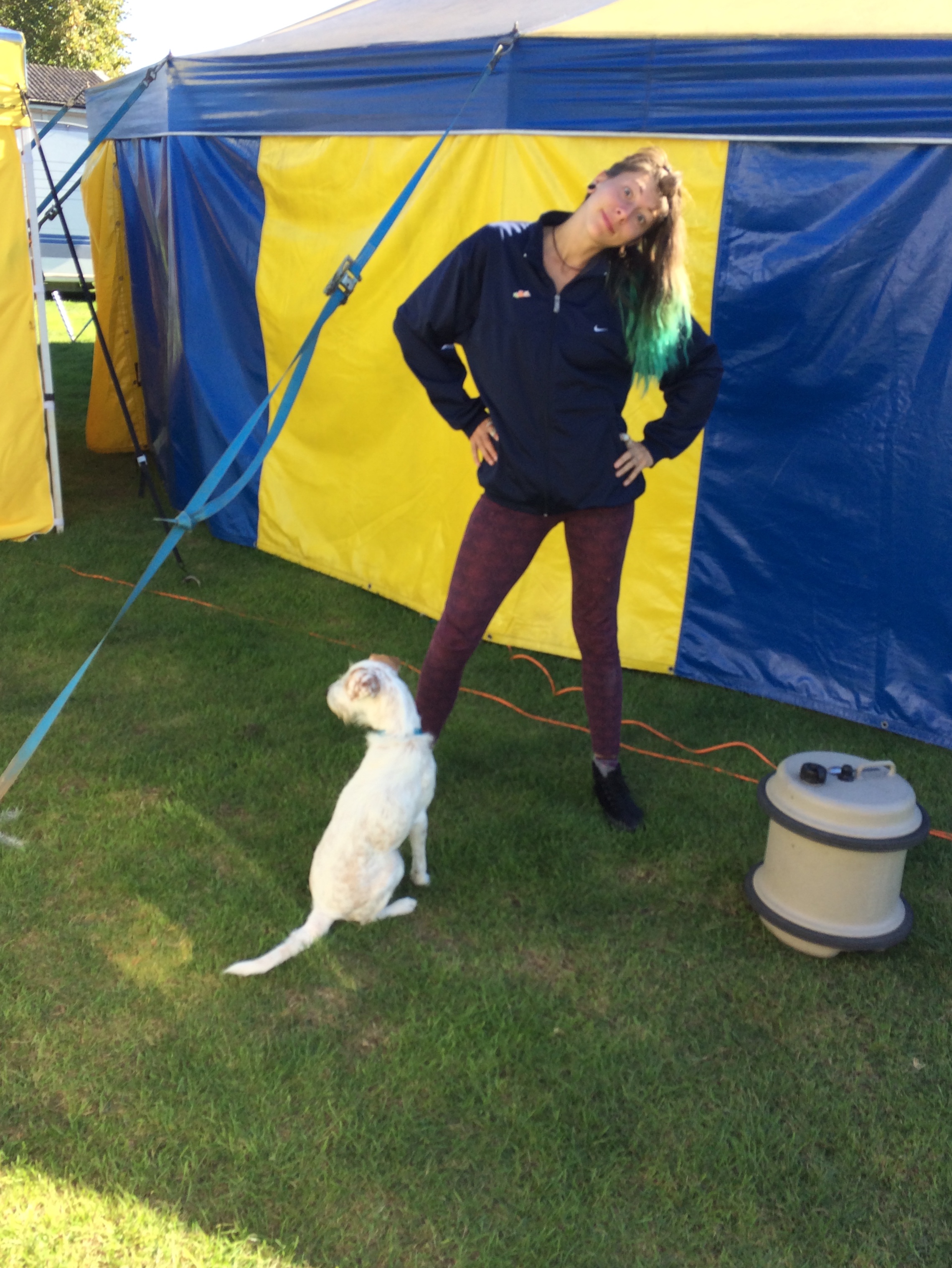 Life is quite mellow camped in a field round our little top, playing with toys, helping each other with our performance skills & enjoying each other’s company. Even occasionally having a drink in the pub across the road.