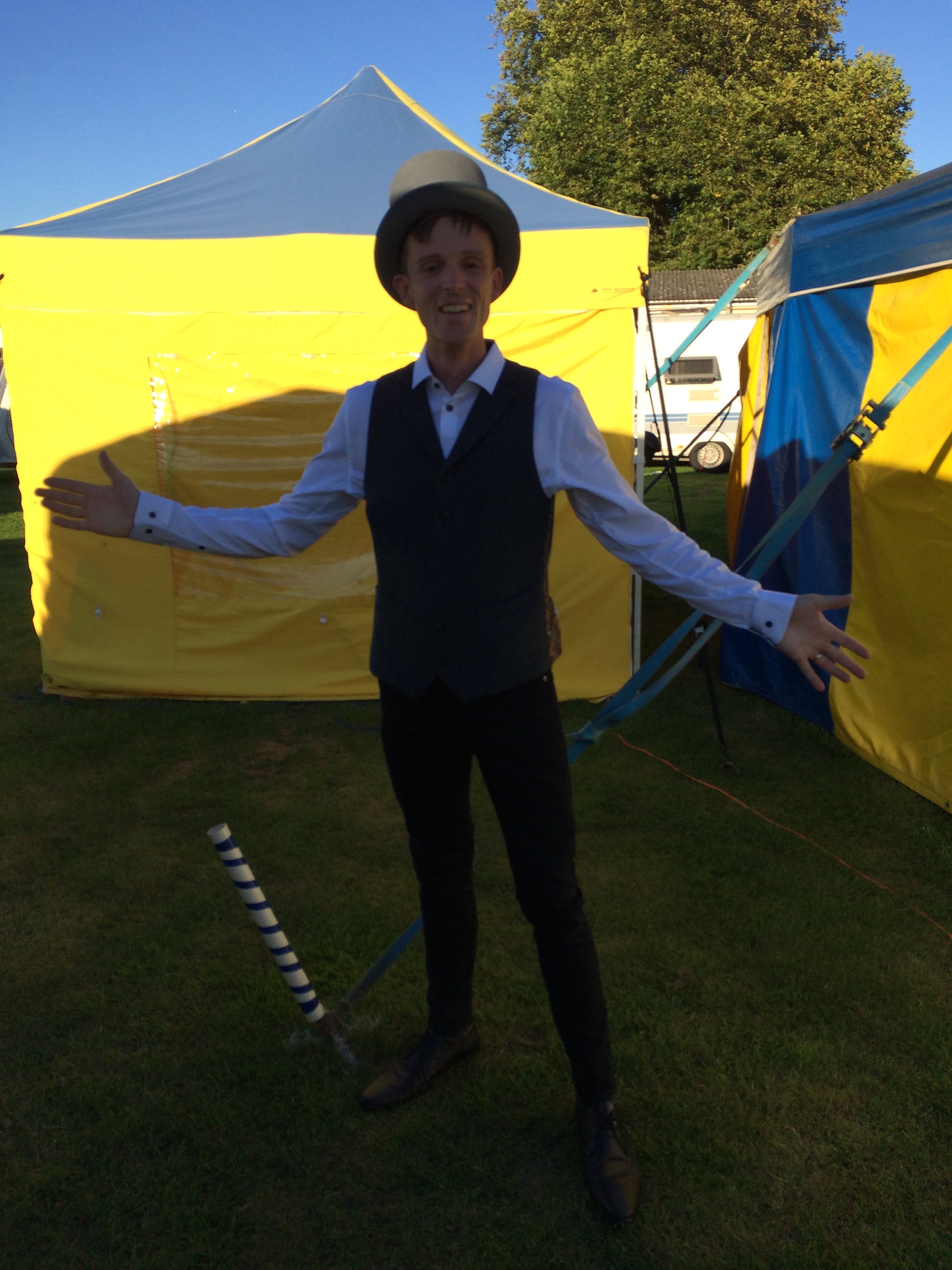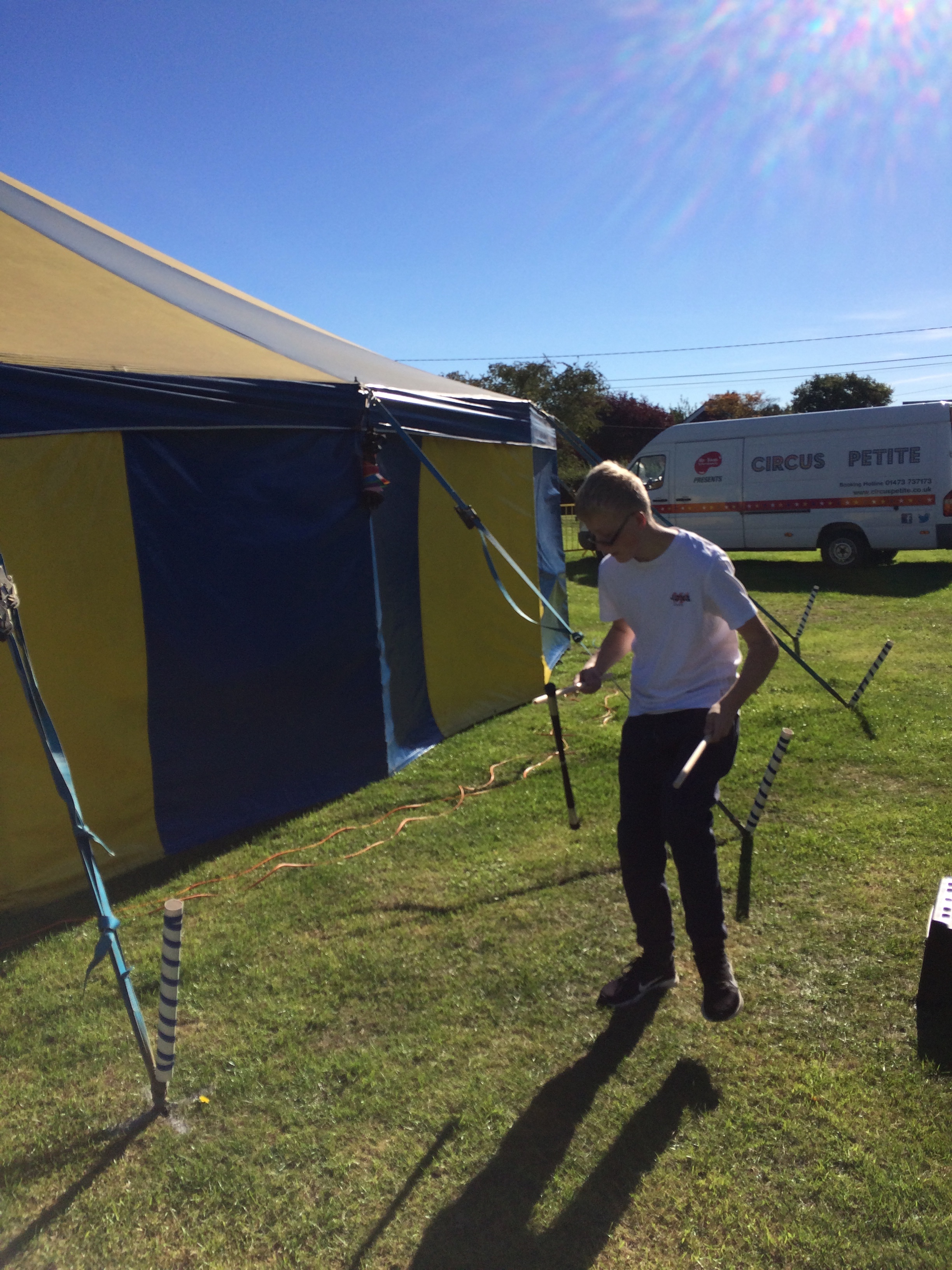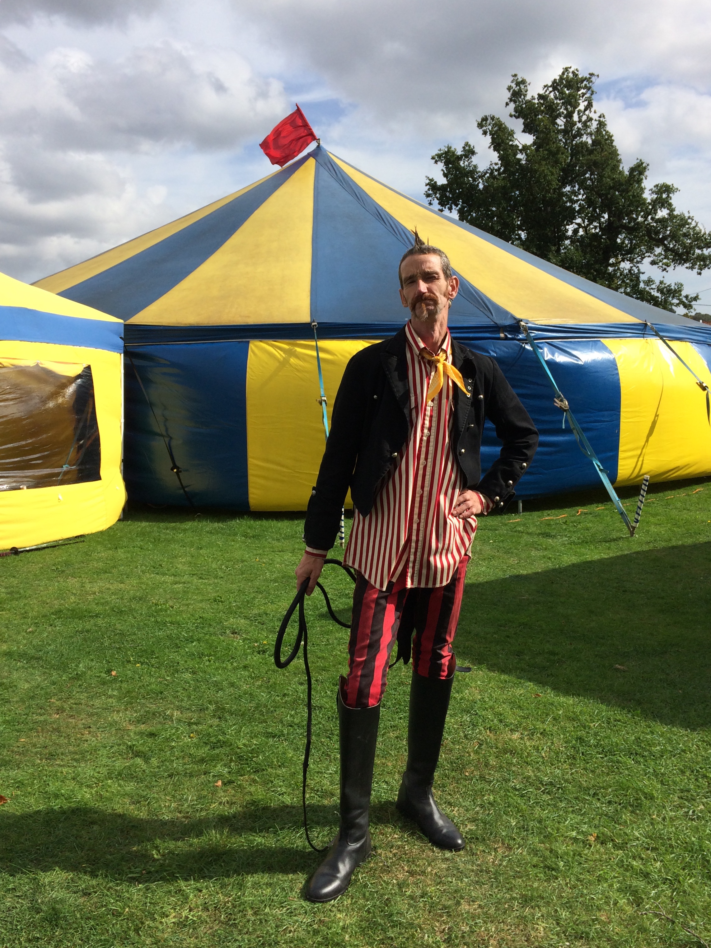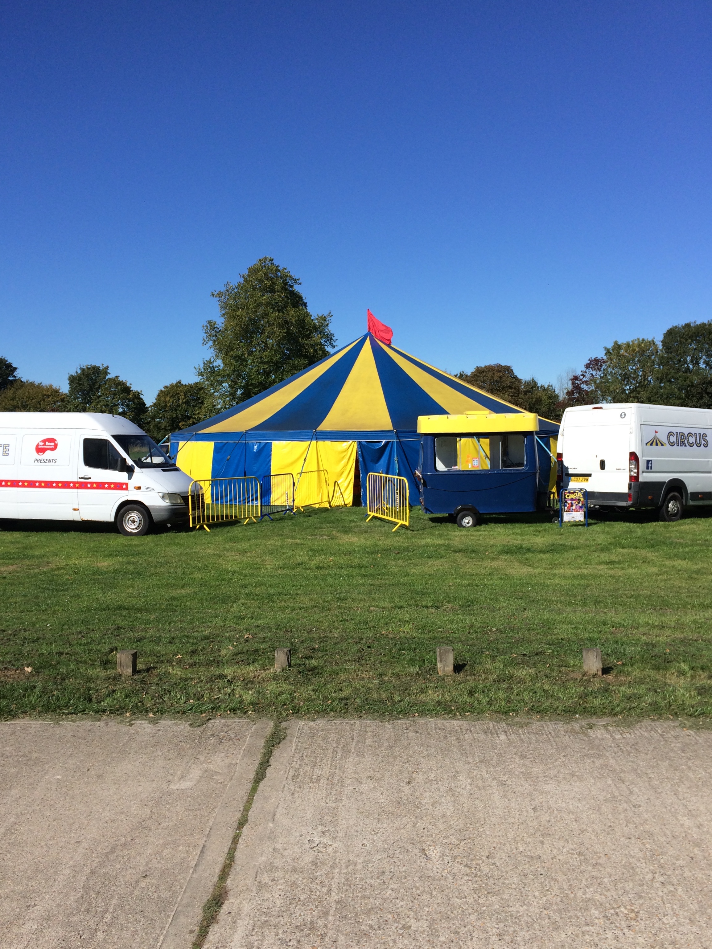 So, it’s a beautiful day, sun is shining & we are in a little village, Elmstt, just outside of Ipswich, England. The circus tent is up & ready to rock! It’s Wednesday morning & everyone is mulling around gradually getting ready for tonight’s 6 o’clock show.