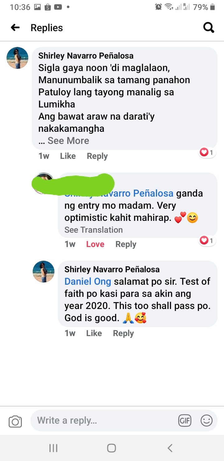 And I replied back to his comment. I just want to encourage everyone specially this trying time. This pandemic is no joke. Death toll rises each day. I am thankful for this poem challenge because I was able to voice out my optimism in spite of our struggles.