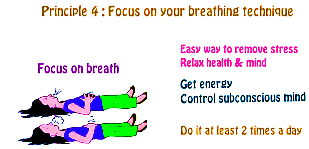 Breathing Technique is a simple way to reduce the mental pressure of the brain. It relieves the body and mind. Breathe slowly through the noses and take it out of the mouth gently. During this need to be focused on taking and leaving in a sequence.