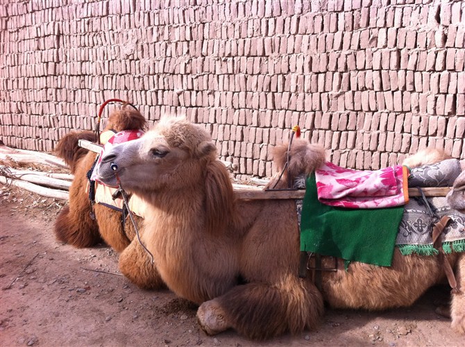我们走的不是寻常的路线,有一位本地的农夫带着我们骑骆驼4个小时进入后山,这样就躲开了成群的游客,甚是开心。骑骆驼的感觉和骑马很不一样,特别是在沙地里,一上一下,比较温柔,但是慢悠悠的,急性子估计肯定受不了.