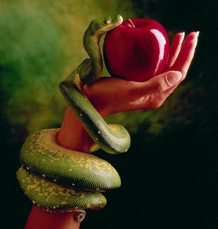 (The fruit of self knowledge, offered by the feminine, coiled in the serpent, perfect representation)