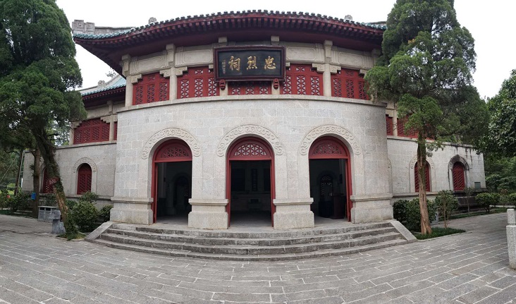 整個忠烈祠仿南京中山陵建設,由下至上逐步上升的一個建築格局,通過若干梯級後直達最頂端的祠堂
