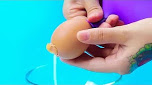 Repurpose eggshells into cute candles. Make a hole in the egg and blow it out with a balloon.