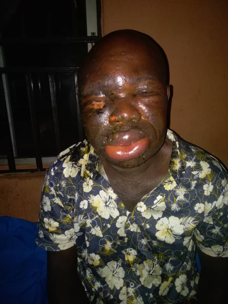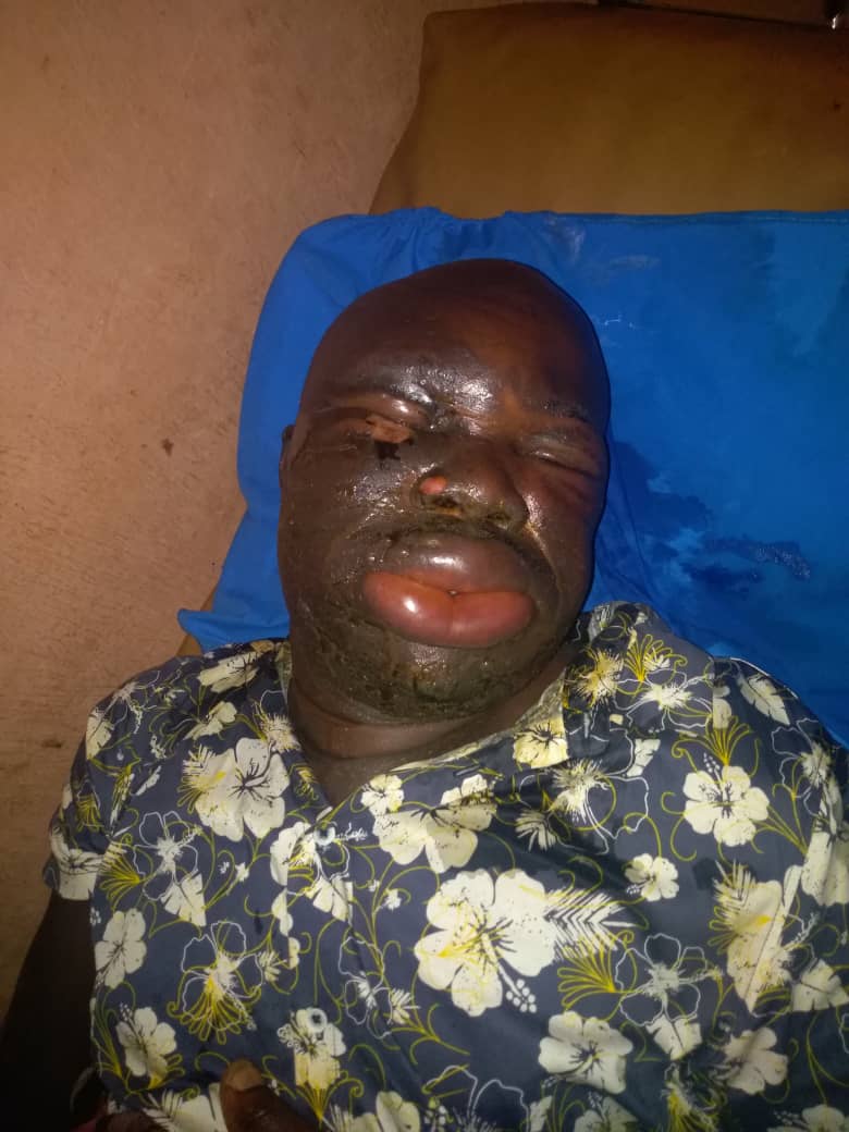 He felt it was a minor injury until his face started swelling. We begged this man to go to hospital but he refused until he noticed that the face is increasing more and more, so he accepted to go to the hospital.
