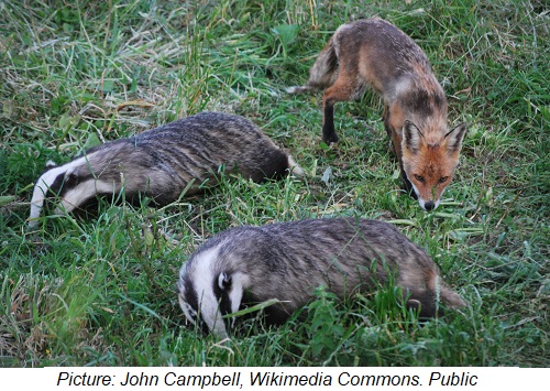 A Fox Foraging with a Couple of Badgers
