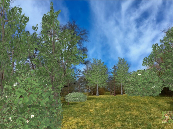 Trees didn't look right, so I started over and added the little fox from Pixabay in the corner: