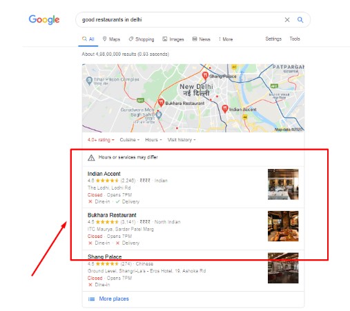 So what i will do? Obviously, i will google it “ Good restaurants near me” or “Good restaurants in delhi”