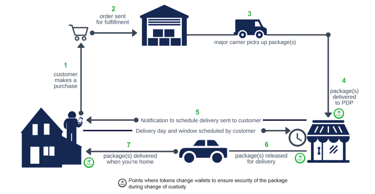 Во время покупки в интернете, покупатели хотят знать, где конкретно находится их посылка в момент ожидания. В то время как обычные логистические компании генерируют коды отслеживания, которые позволяют потребителям получить общие детали касательно своих посылок, использование блокчейн позволяет просмотреть месторасположение водителя и точно знать когда он приедет к пункту назначения с заказом.