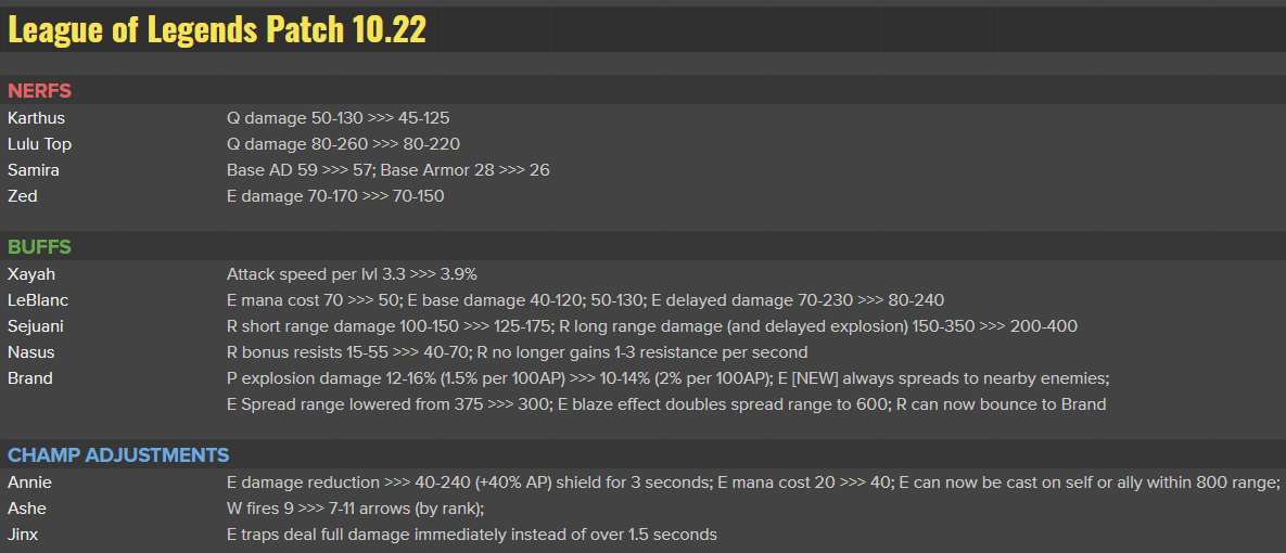 💲 League of Legends Upcoming Patch notes 10.22💲