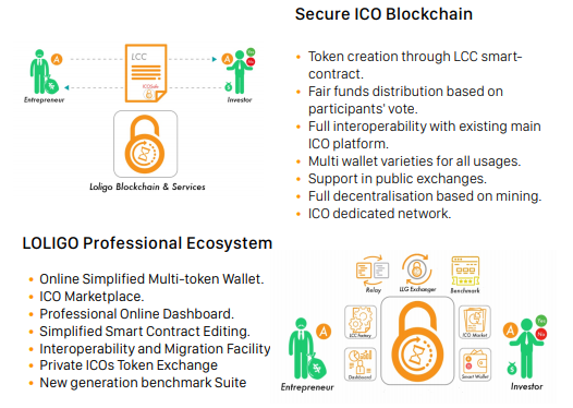 Вищезазначений виклик породив ідеї, які принесли проект "Loligo". На відміну від поточної платформи ICO, Loligo пропонує повні та унікальні технічні та юридичні рішення всіх проблем та ризиків кампаній збору коштів. Як уже згадувалося раніше, система стала децентралізованої платформа, Loligo буде використовувати силу інтелектуального Blockchain розірвати контракти, які дозволяють поступове вивільнення коштів, залучені для ца і в той же час, колективні прав зняття. Тобто, токени можна видобути і екологічно правильні, споживаючи мало енергії завдяки подвійному видобутку. Шахтарі можуть продавати фішки в будь-якій визнаній біржі, і окремі особи можуть використовувати їх для участі у зборі фандрейзингу, включаючи ті, що пов'язані з програмою ICOSafe.