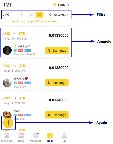 La función T2T es un sistema de intercambio de criptomonedas entre usuarios de LoMoStar. A diferencia de los sistemas de exchanges, este caso, los vendedores y compradores tienen la posibilidad de operar directamente entre ellos, sin tener que basarse necesariamente en el precio que está estipulado en el mercado. De modo que son los propios usuarios los que tienen la responsabilidad de fijar el precio final con el que quieren operar.