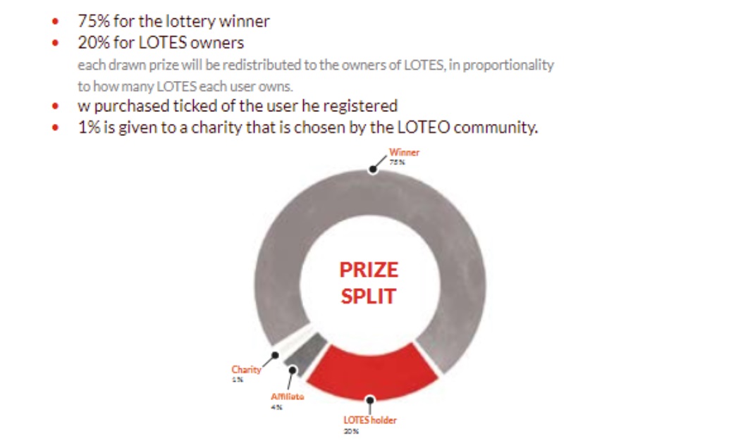 The users of LOTEO enter the lottery by obtaining single tickets for the LOTEO lottery, which is acquired every week, utilizing the Ethereum cryptocurrency, or through a third party merchant. Each Ethereum wallet address that has bought passage is then enrolled as a member in the LOTEO lottery. LOTEO will also later include a daily lottery governed by similar guidelines.