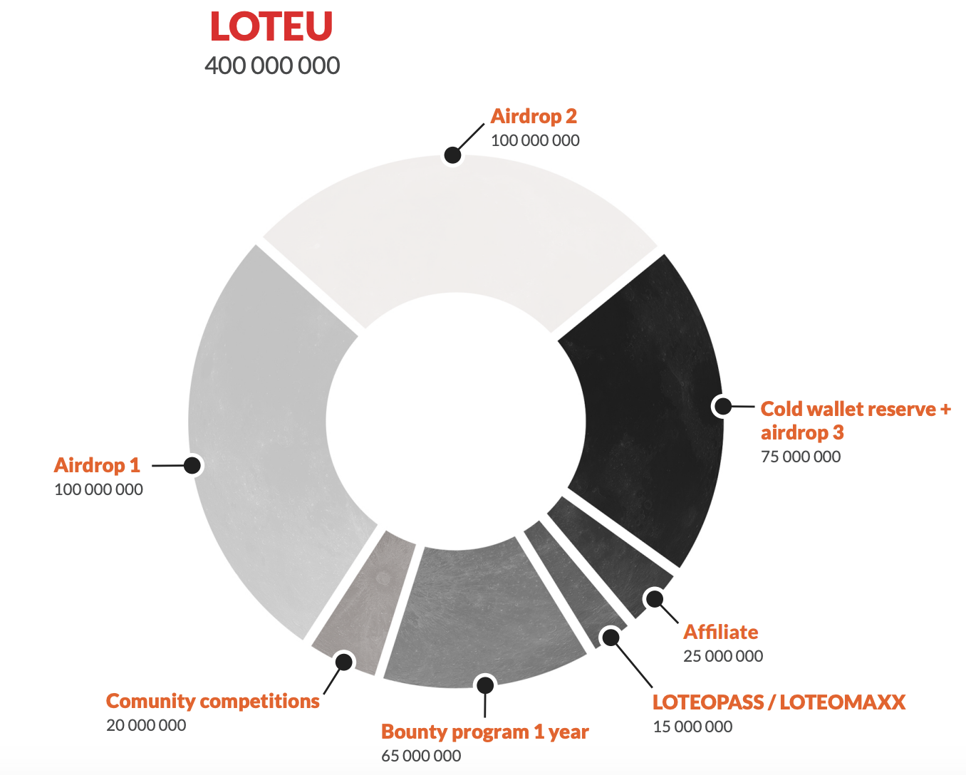 LOTEO will make 400 000 LOTEU tokens for advertising purposes which additionally incorporates offshoot rewards on its platform. All tokens will be given to the COMMUNITY in various stages, as per the Whitepaper. LOTEU is a network coin.