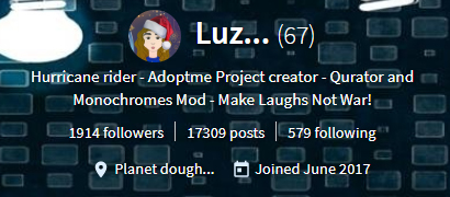 Luz, aka @blacklux, is the creator of Adoptme Project and also Mod for @qurator and @monochromes.