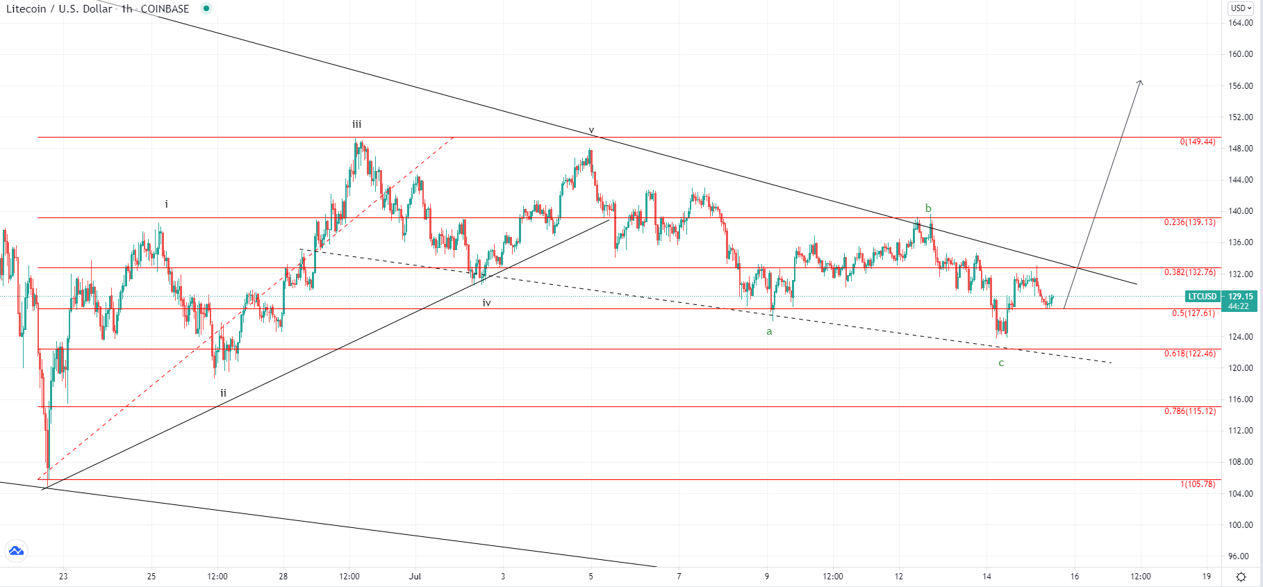The price of Litecoin was on the rise from yesterday and came up by 6% from its low of $124.3 to $131.8 at its highest point today. We have seen a minor pullback to $127.6 and currently it started moving to the upside again.