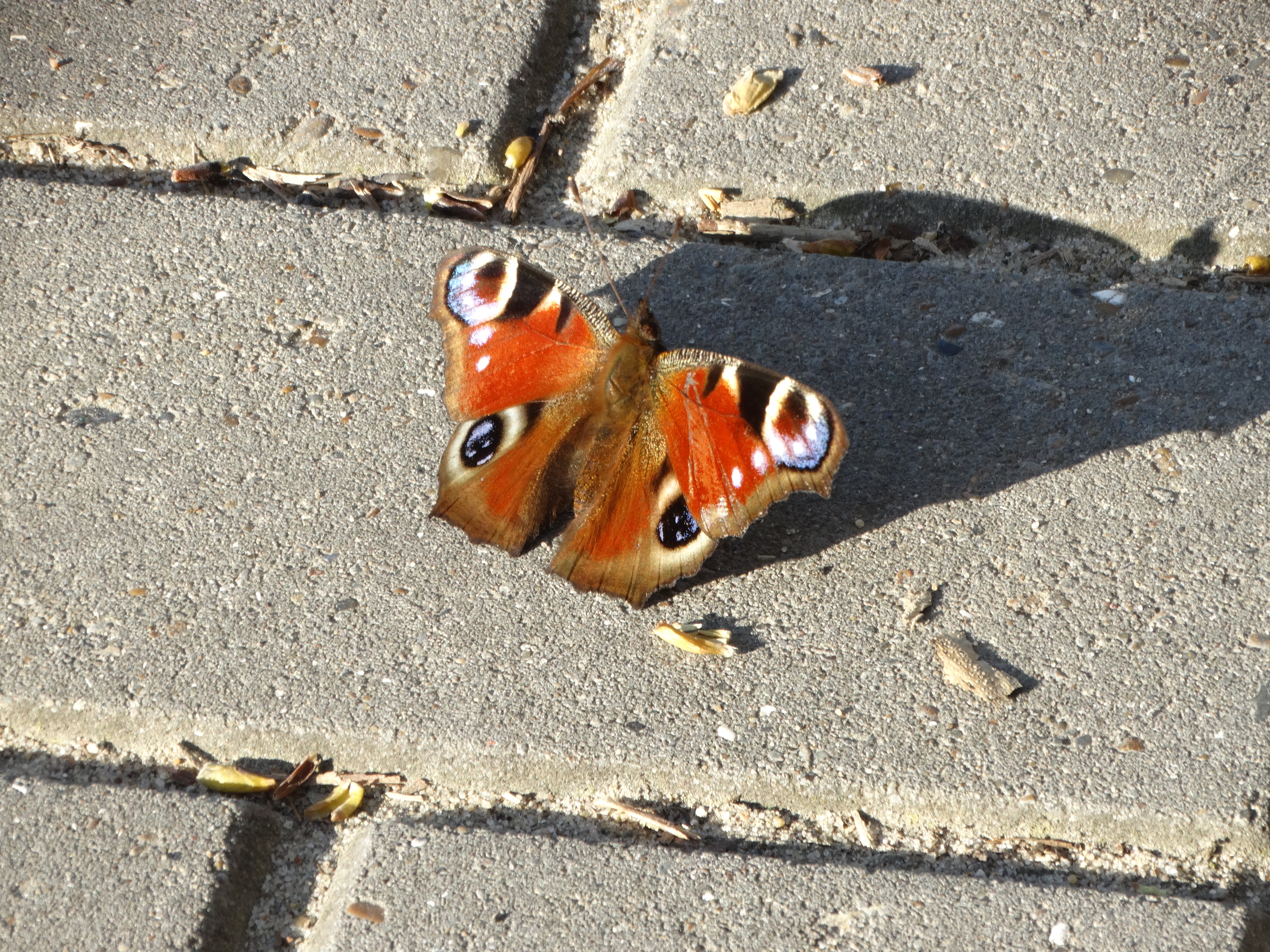 After the rain, salt emerged from the concrete paving slab. It attracted a butterfly. I used to think that something sweet was spilled on the tile, but I analyzed a lot of my pictures and realized that the butterflies are attracted to salt, not sugar.