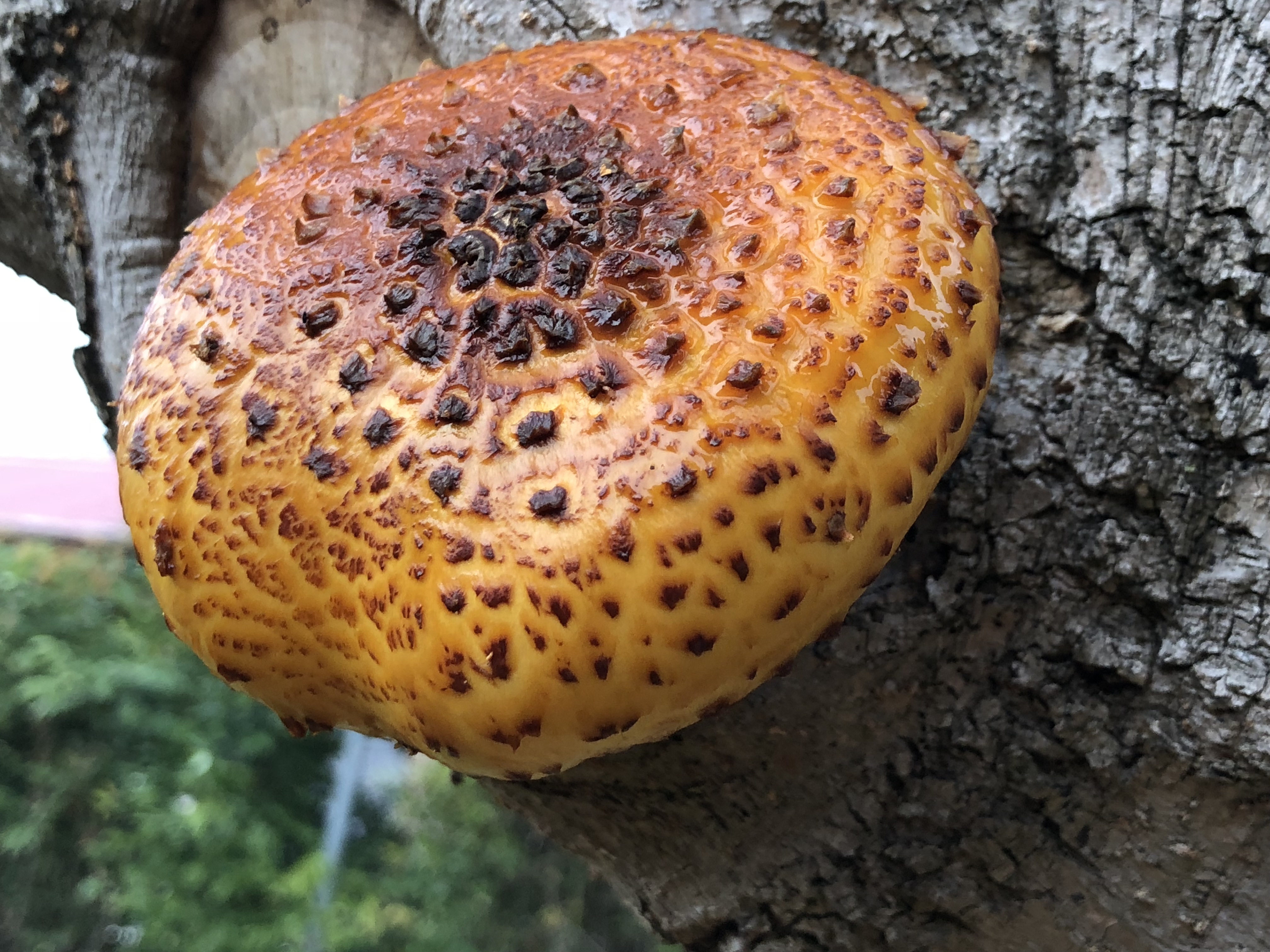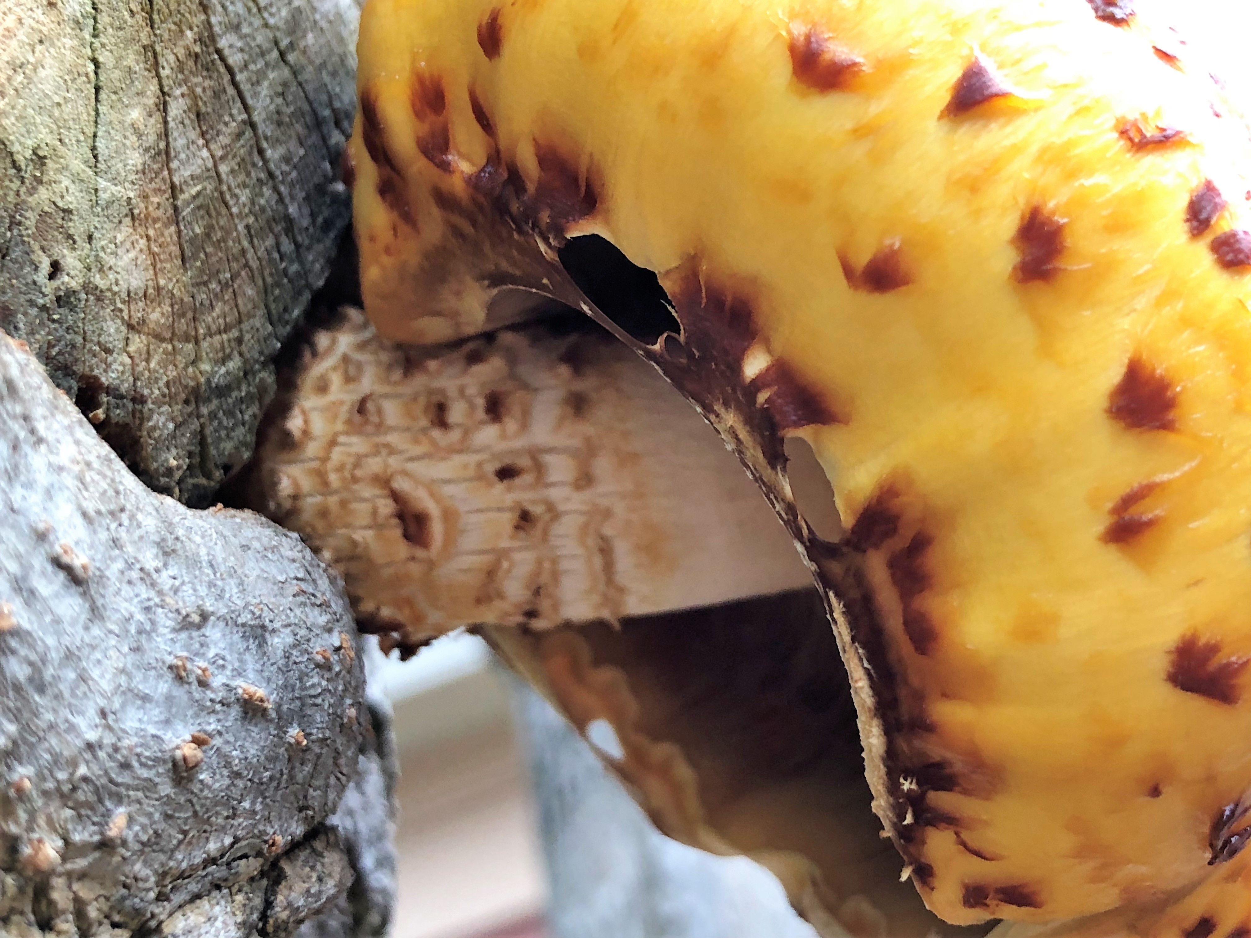 Saw this pretty coloured mushroom growing on a tree. I loved the colour contrast between it, the bark and the surrounding greenery. I don't the name of it but it's about 15cm wide and is my entry for #macrophotography.