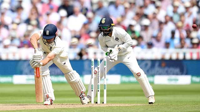 Joe Route Half-time Celebration Route With Bairstow They made a couple of hundred pairs. But the 107-run half-century that was not enough to score 80 runs. Virat Kohli got him out of the run. Bairstow was bowled by Umesh Yadav for 70 in the English captain's return.