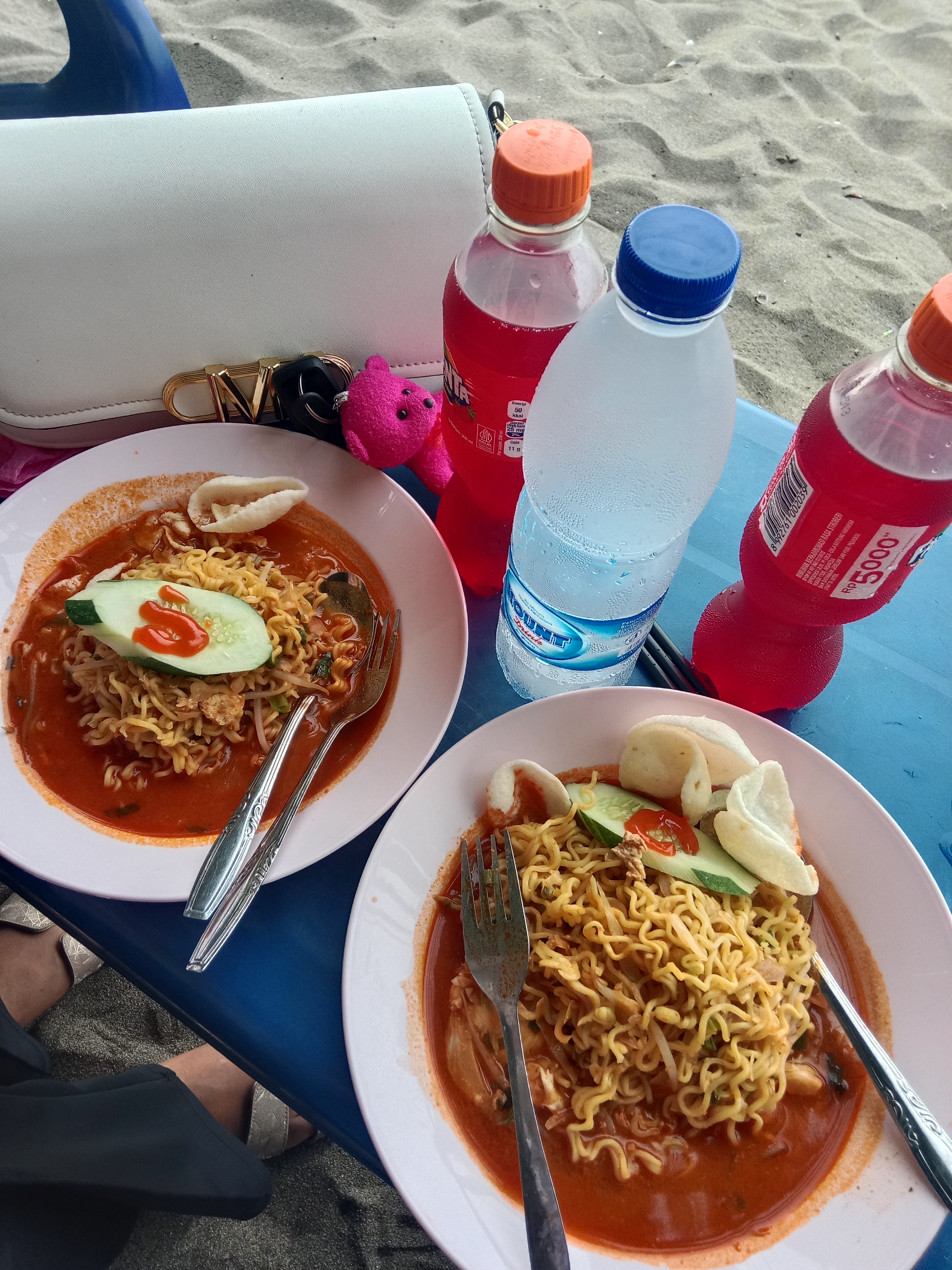 Menikmati indomie telor dipantai