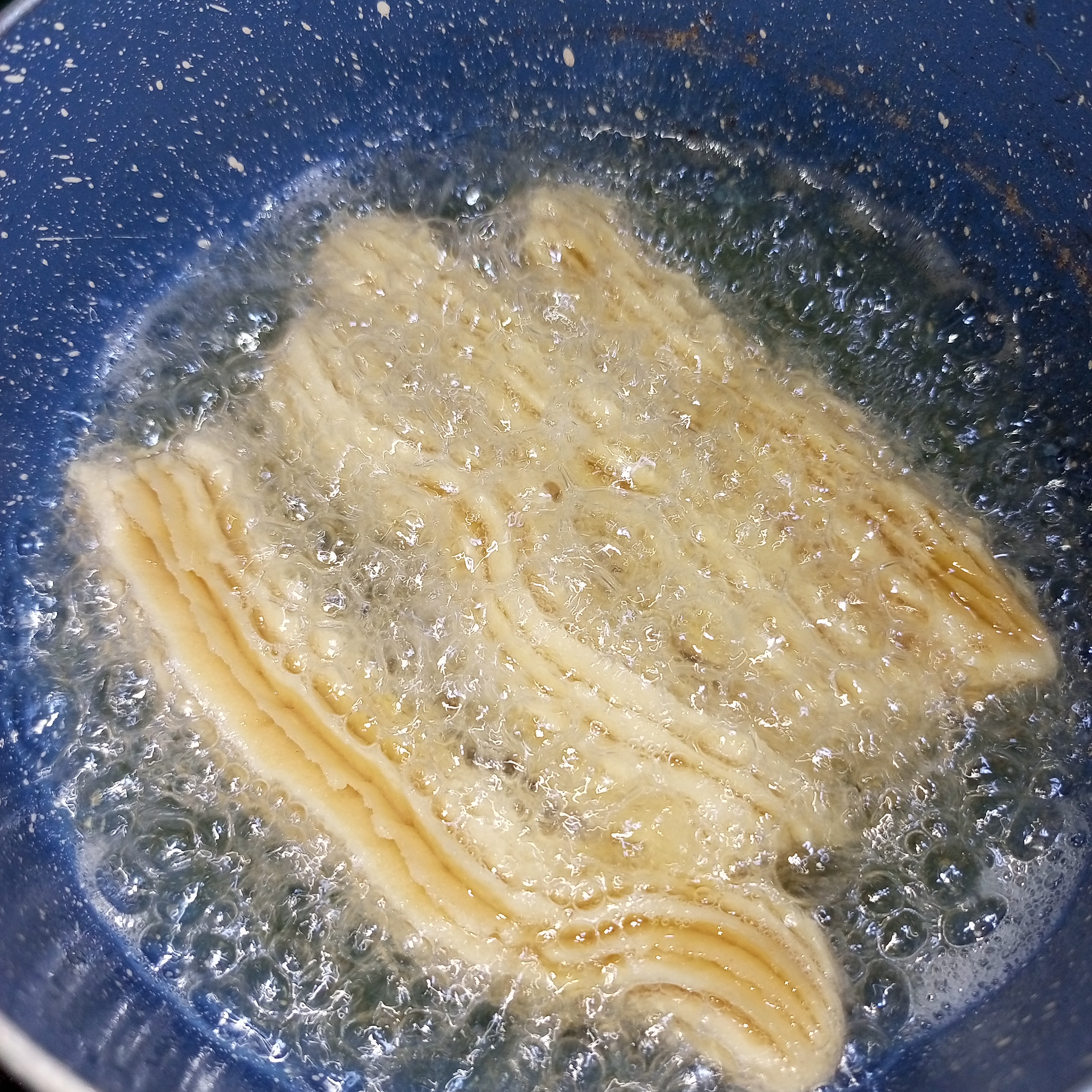 Luego empecé a freír y déjenme decirles que no hubo un churro que me explotara o se rompiera, todos quedaron hermosos y doraditos, súper espectacular la receta!