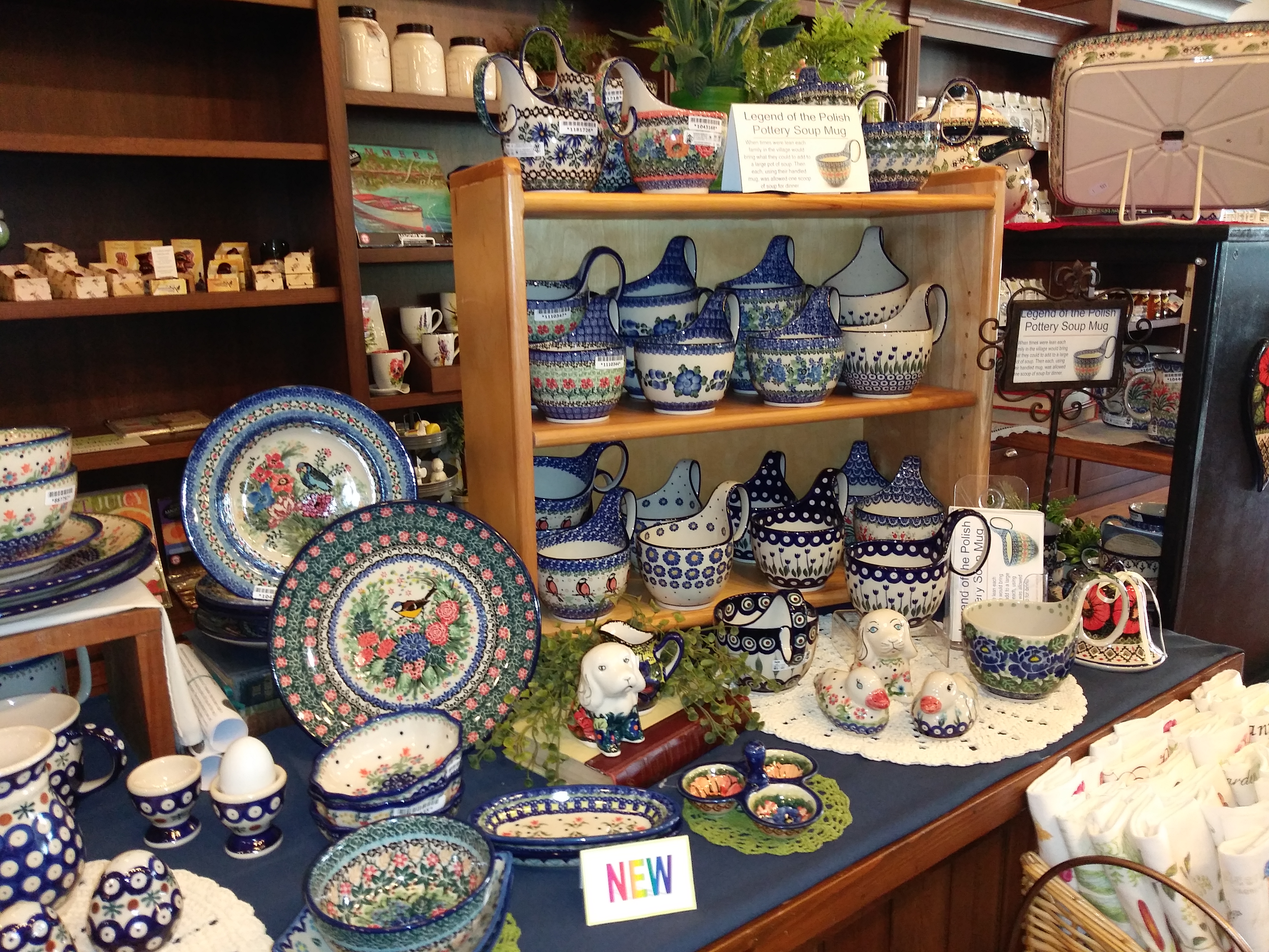 I noticed the Polish Pottery and I saw a piece I didn't have. Oh, how tempted I would be! From soup to nuts, we really could go in there and have a field day! What a nice little place inside that pretty little town.