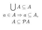 Definition A set A is said to be a transitive set if and only if every member of a member of A is itself a member of A: