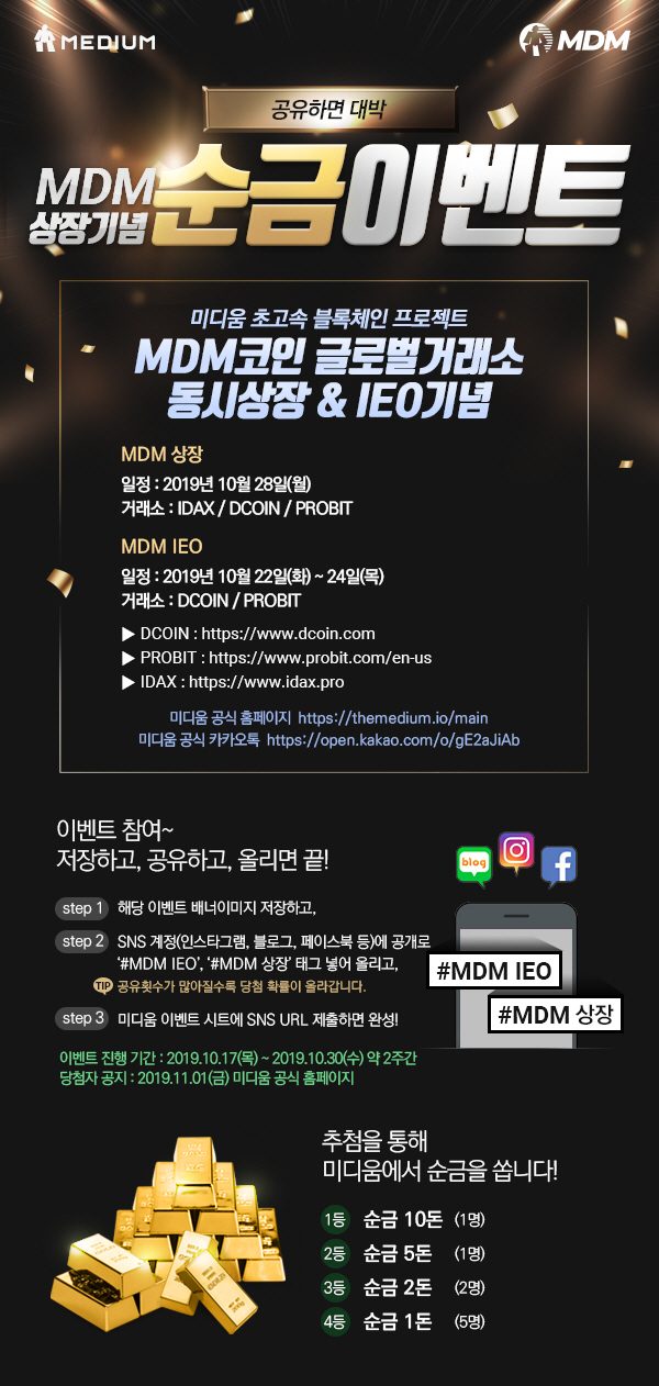 미디움(MDM)코인 상장기념 순금 증정 이벤트