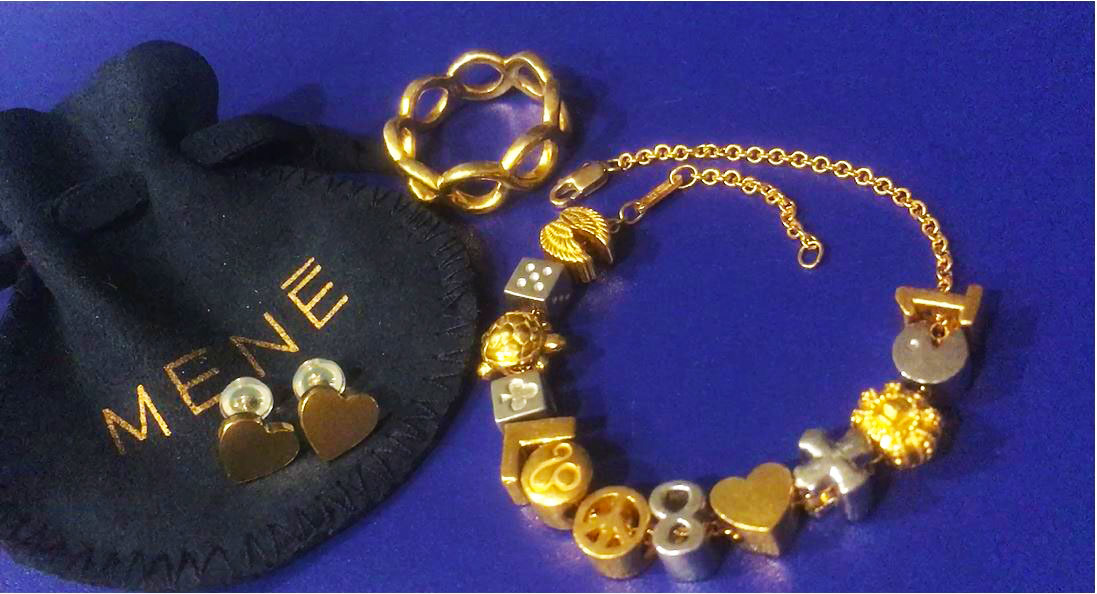 Mene 24k gold bracelet of 24K gold and platinum charms are so versatile and always elegant. I can wear Mene 24K jewelry with any of my watches.