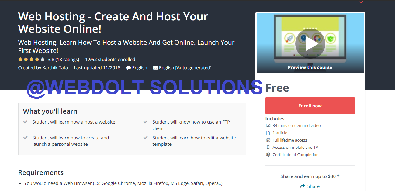 FREE COURSE Web Hosting - Create And Host Your Website Online!