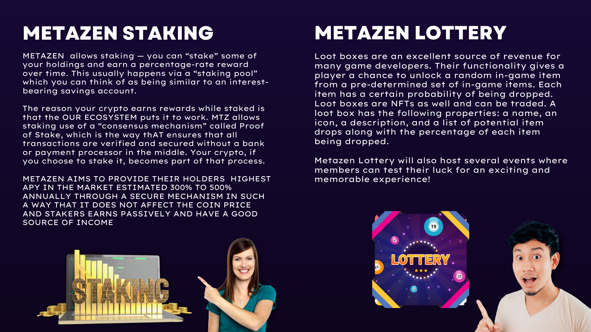 LOTTERY SYSTEM, STAKING SOLUTIONS AND OUR OWN STAKING PLATFORM IN OTHER WORLDS METAZEN IS A