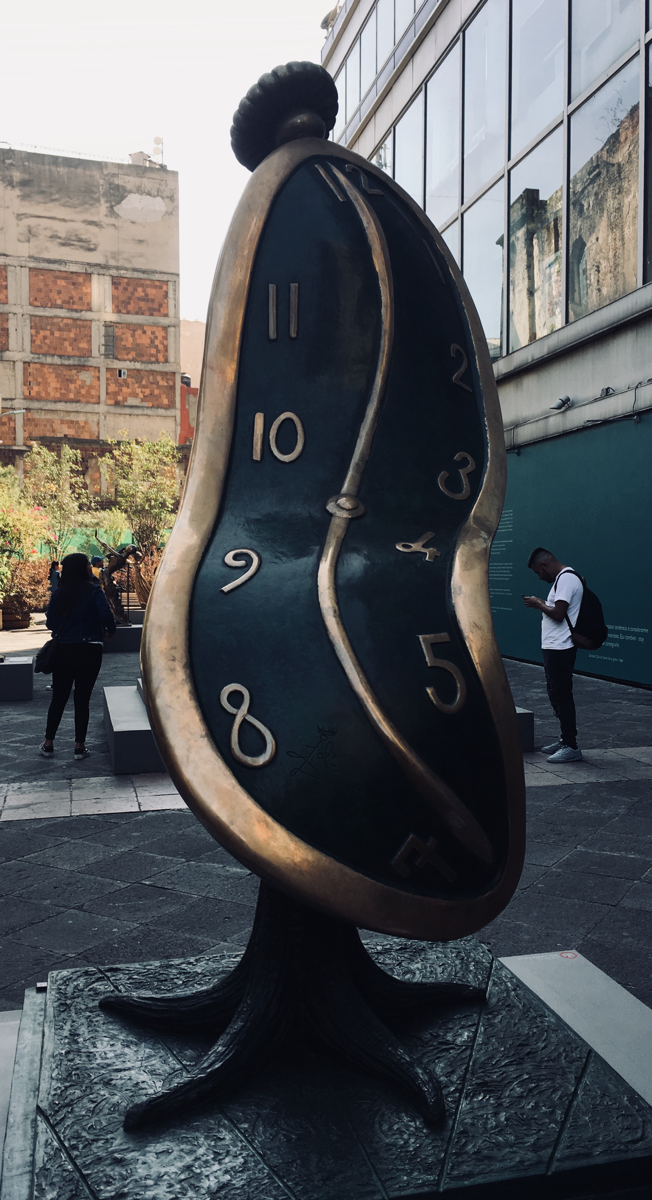 We went to the downtown in CDMX (Mexico City) to buy some jeans, suddenly we saw some sculptures next to the street, many people were inside the place. A melted clock, the closest one to the street, she said: Dalí! with a little smile (she knows that surrealism is not precisely my favorite movement).
