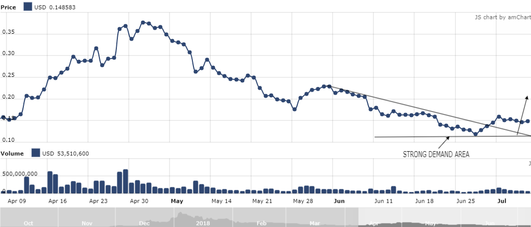 This week open bullish with price at $0.1419 against last week opening price of $0.1310, which implies that we may see more buyers taking the long position as the week goes by whose pressure and presence will lead to upward movement in the price of the cryptocurrency.