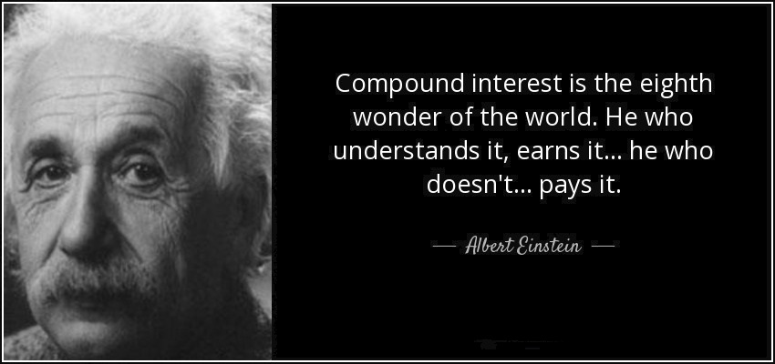 Now going by the basics of what we all were taught in our school books, compound interest will actually show its amazing exponential growth if we can just give time. The fundamental of Long term investors to HODL applies here. Compound Interest is often referred as the Eighth wonder of the World. The great Albert Einstein has once quoted that "he who understand it, earns it... he who doesn't pays it".