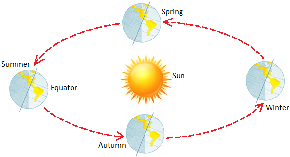 A year is usually divided into summer winter spring and autumn seasons seasons change due to the change in the position of the earth around the sun.