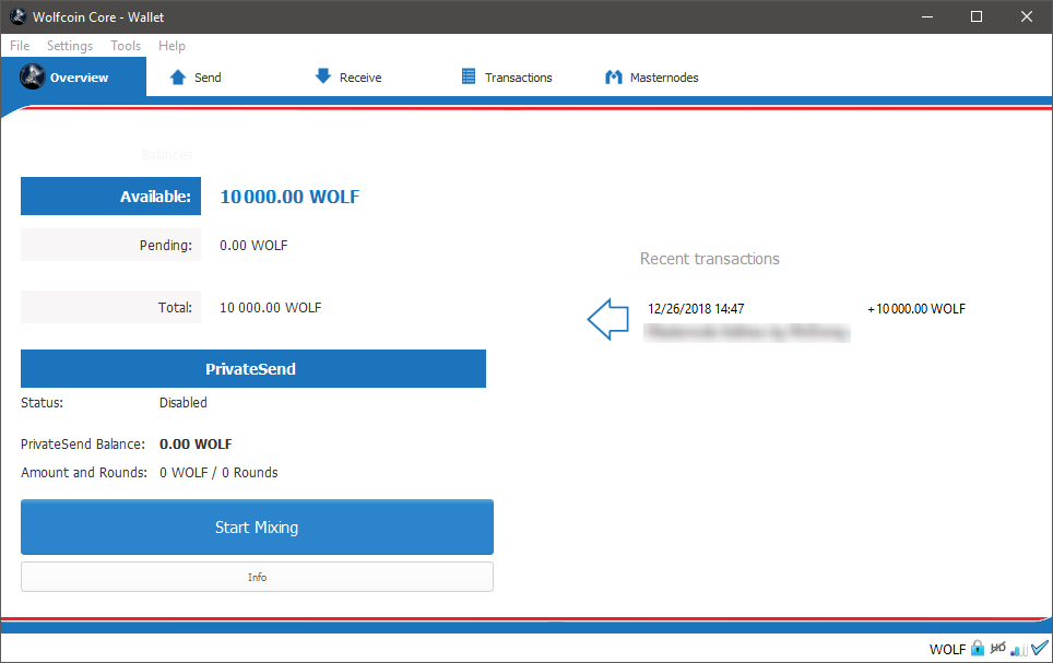 Masternode Collateral 10,000 Wolfcoins