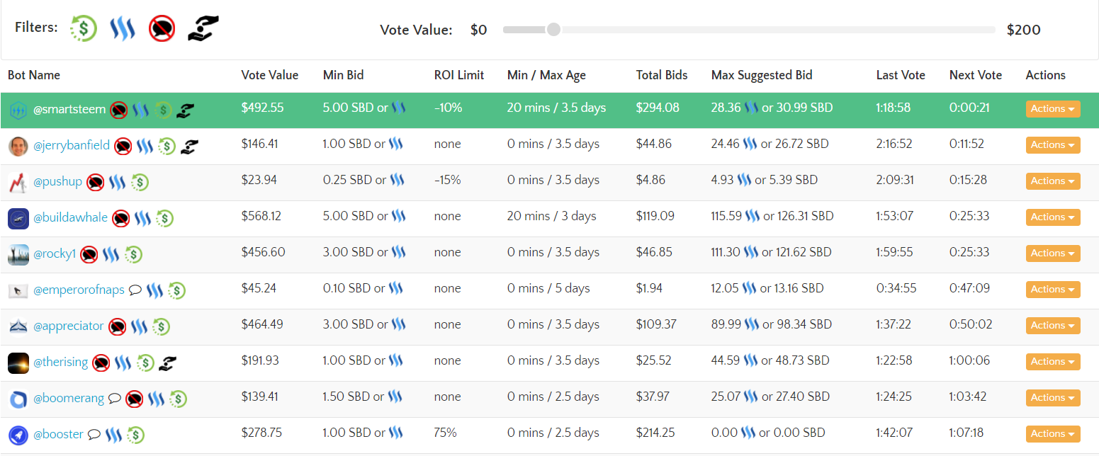 Initially I was standing distance to https://steembottracker.com that lists paid upvoting bots. The reason for this is that the site focuses on the auction method to sell votes. In some cases, you can lose money due to the logic of the auction. Over time, some bots limited the ROI loss rate by -10%. Considering many benefits of using the bots, the site has become relatively attractive to me. Bid-based bots are getting less demand at some time periods of the day such as early morning (for İstanbul). I prefer to use them at these time periods.