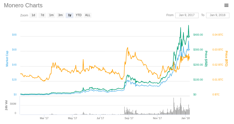 According to coinmarketcap.com, Monero has seen quite a price hike — like the rest of the cryptocurrency market — since it sat at $81.00 in November and shot up to $400.00 by the end of December. Its recent surge in price is undoubtedly the most attractive prospect to seasoned and new miners alike.