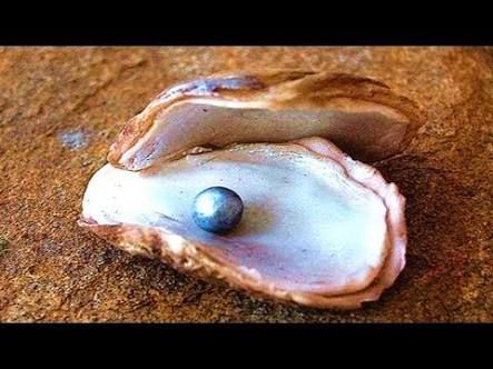 A natural pearl begins its life inside an oyster's shell when an intruder, such as a grain of sand or bit of floating food, slips in between one of the two shells of the oyster, a type of mollusk, and the protective layer that covers the mollusk's organs, called the mantle.