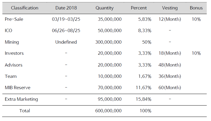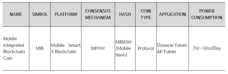 MIB coins are protocol-type coins that operate mobile-based ecosystems, but they can be outlined and applied for ecosystem other than mobile. But there are two reasons why MIB coins limit their use to mobile-based ecosystems. The first reason was to consider the imbalance in power demand and supply to society and industry by mining. Second, it is absolutely possible to operate and expand the complete blockchain ecosystem through the mobile environment.