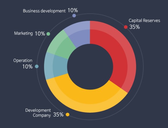 35% will be used for technology development of SmartX Blockchain, Smart Contract, DAPP, token platform, connected platform and security.