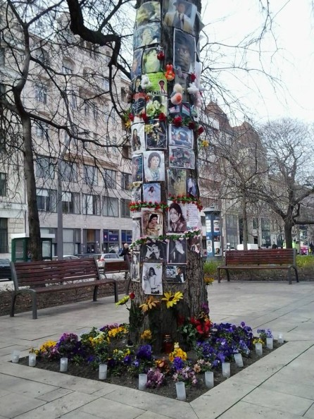 The memorial tree is located in a park in the center of Budapest, opposite the Kempinski Hotel Corvinus, near the entrance to the metro. Michael Jackson was three times in this hotel, always in the same presidential suite: once in 1994 and twice in 1996. Every time the fans would occupy the park, they waited day after day for Michael to appear on the window and waved them.