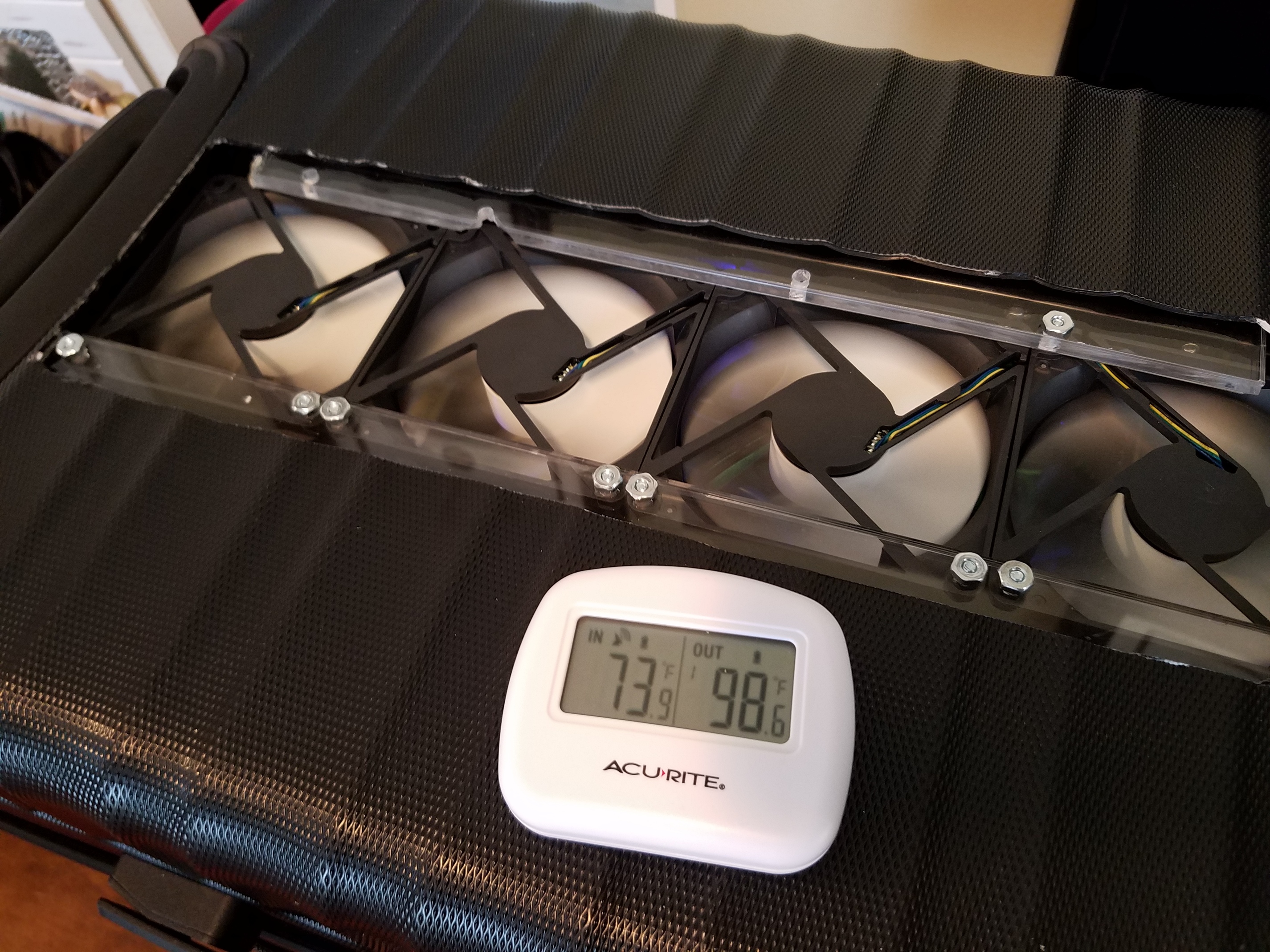 I just wanted to share something I have been working on for the past month or so. I had a plan to build a mining rig in a suitcase that can be transported and be running while closed. It was important for it to be closed to limit the attention it would get and keep the components safer. The plan is to bring it with my when I am at the office (lower rates) or when I go on vacation.